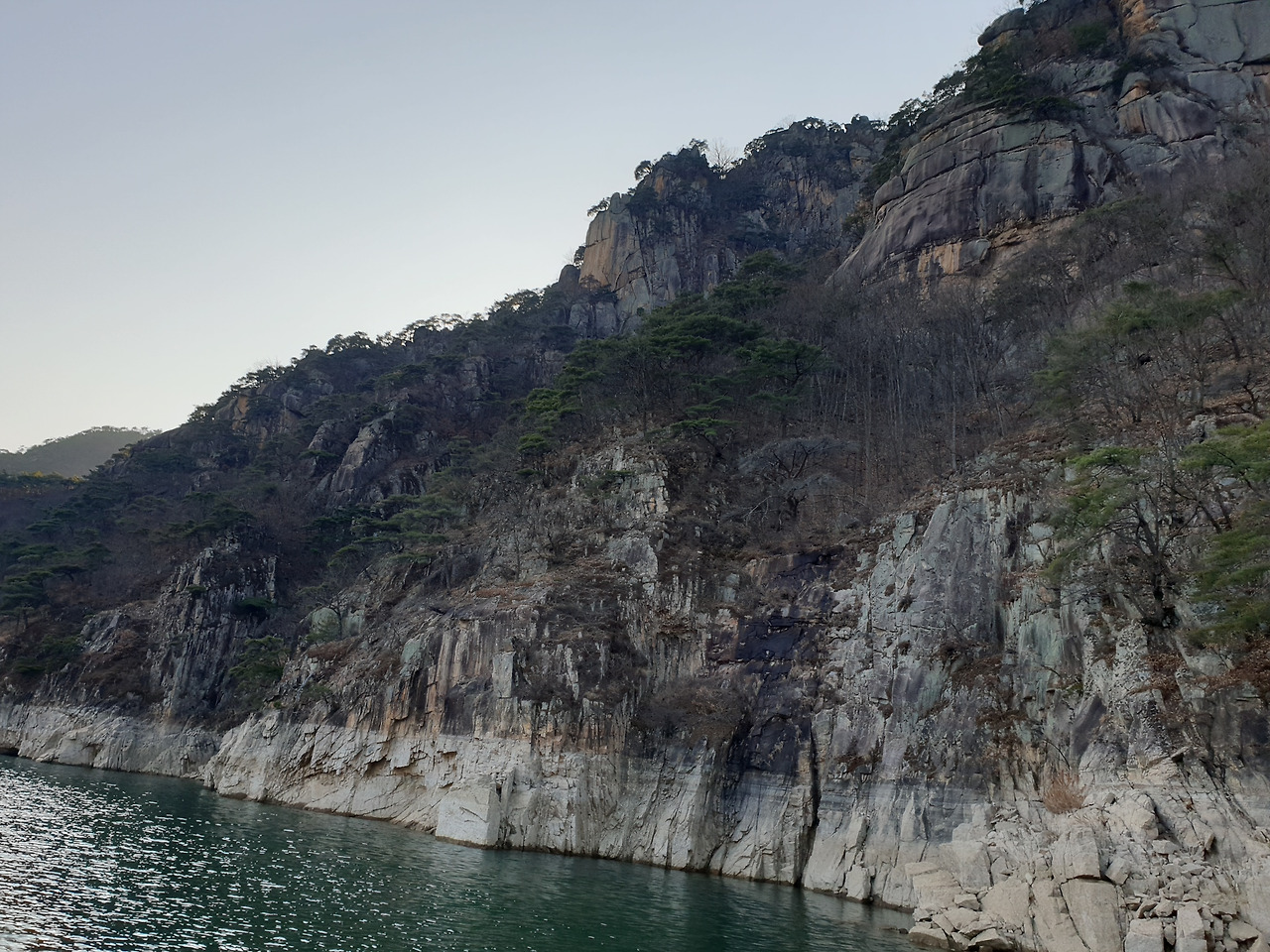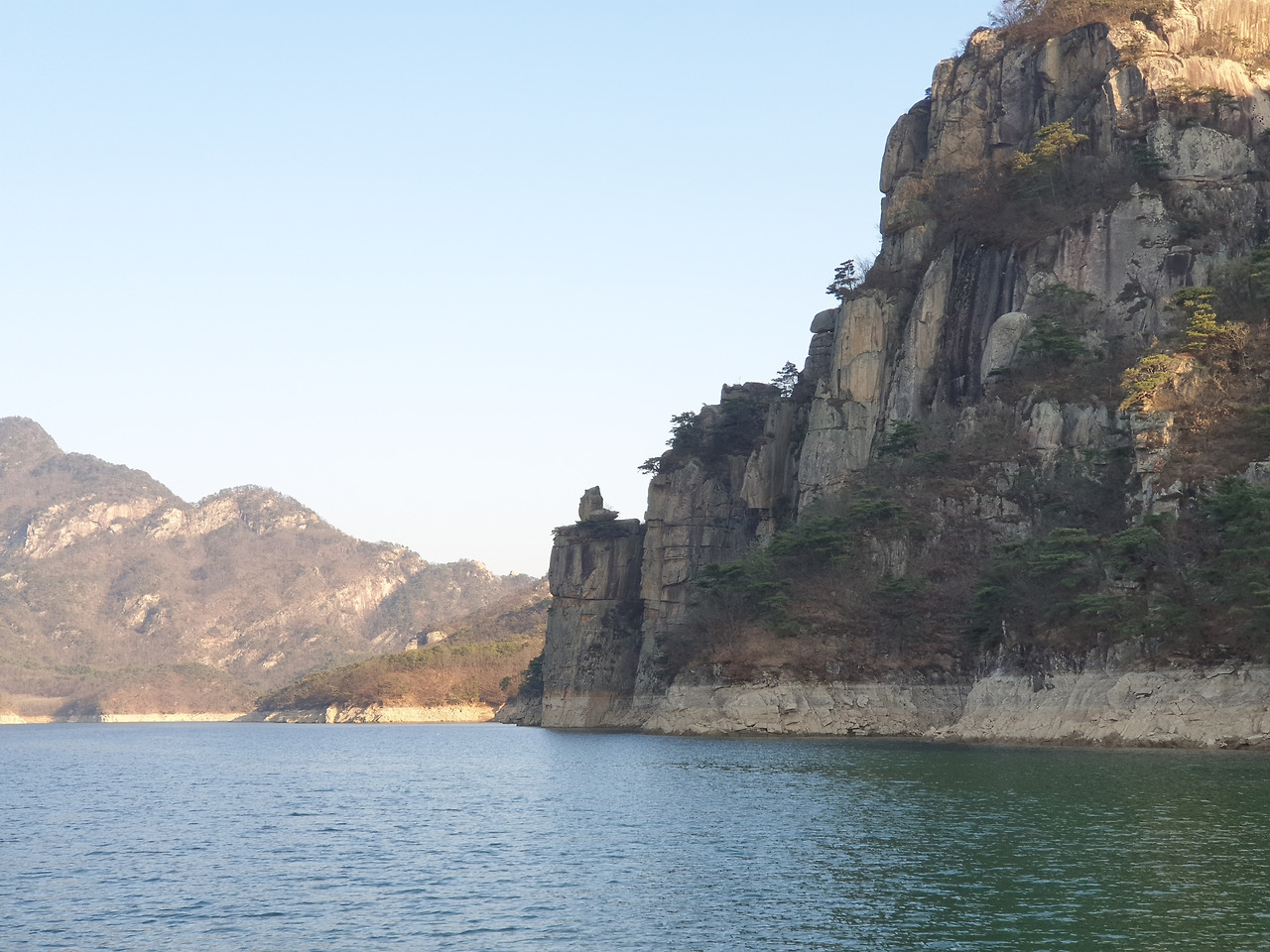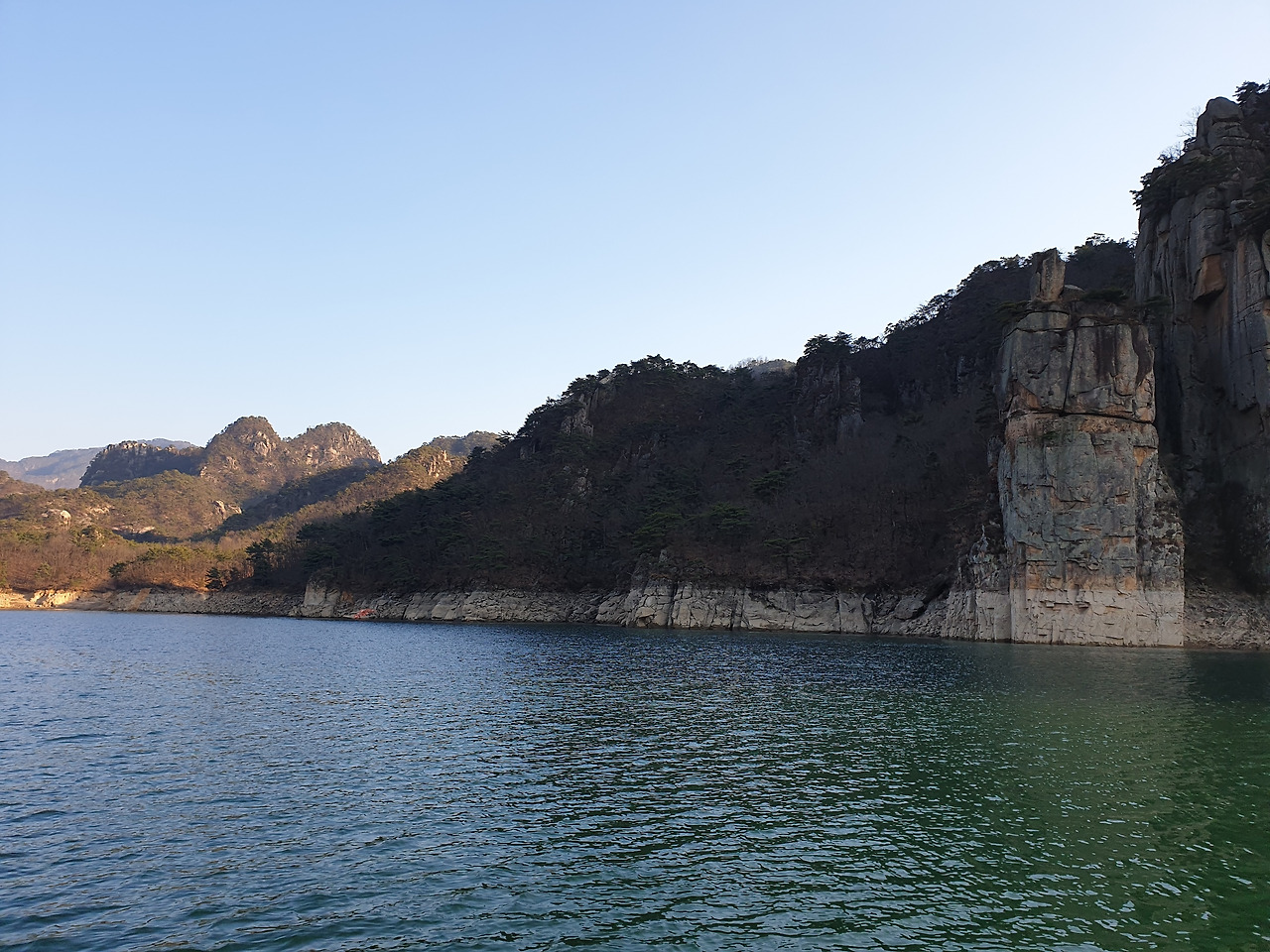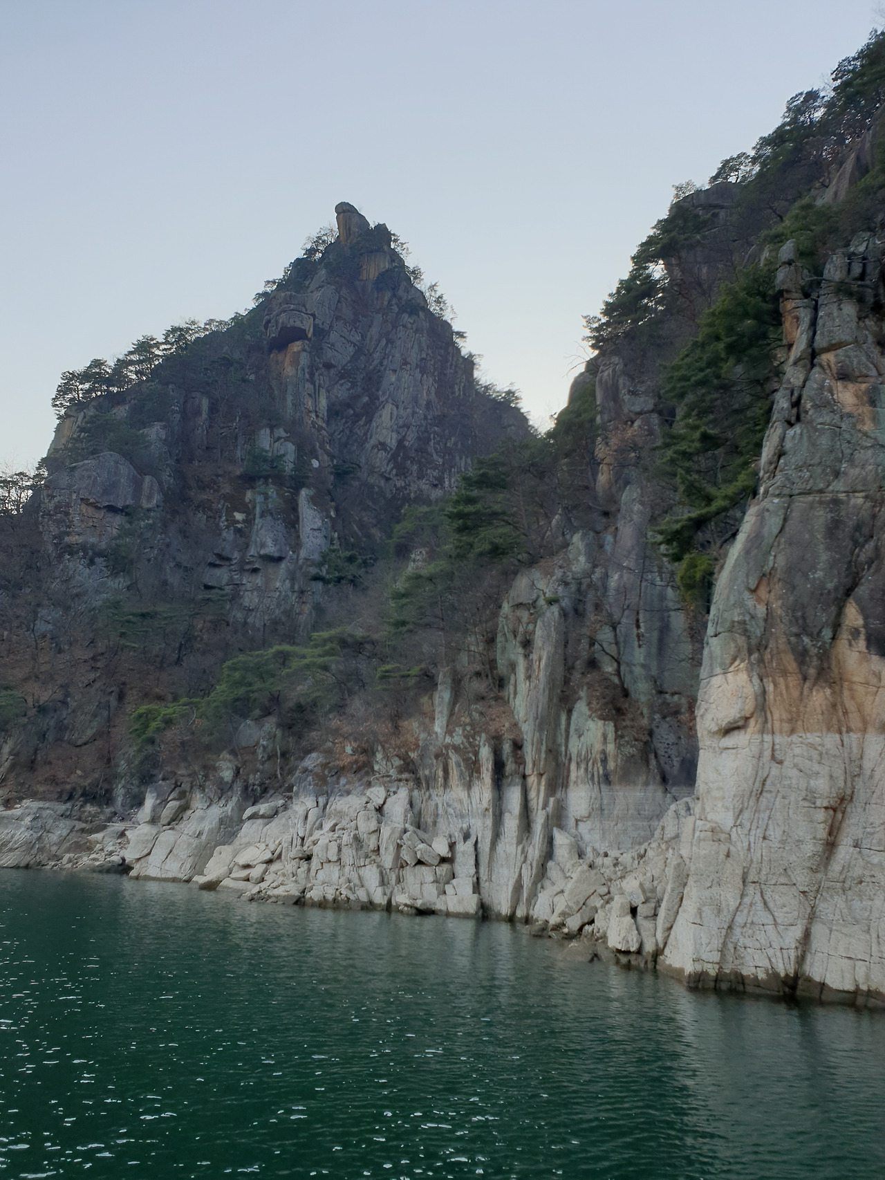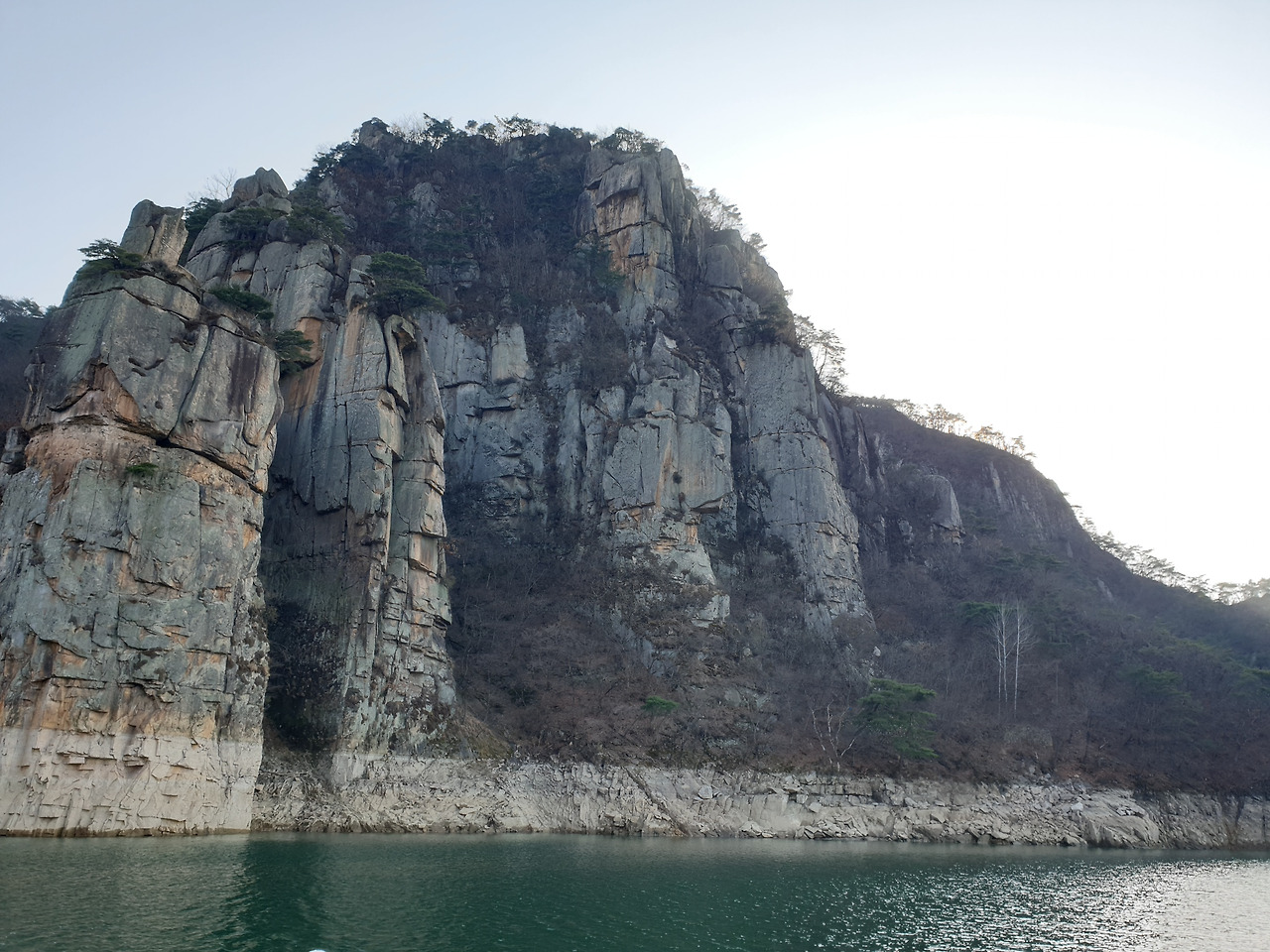 옥순봉의 빼어난 절벽 아래 뉘인