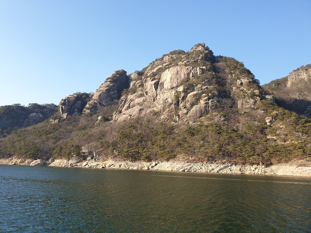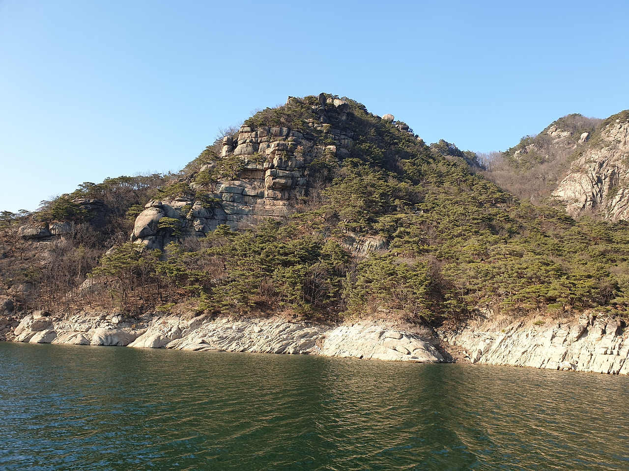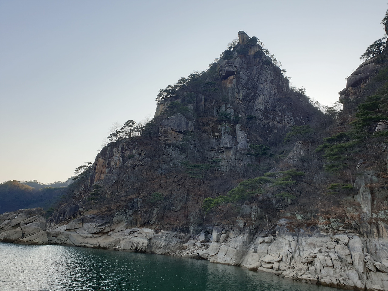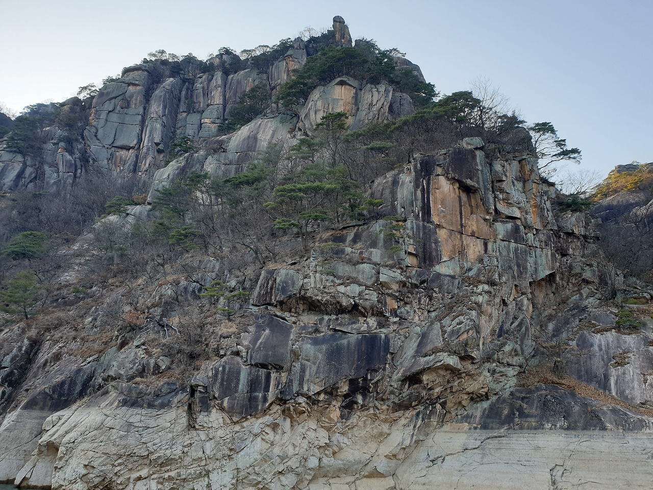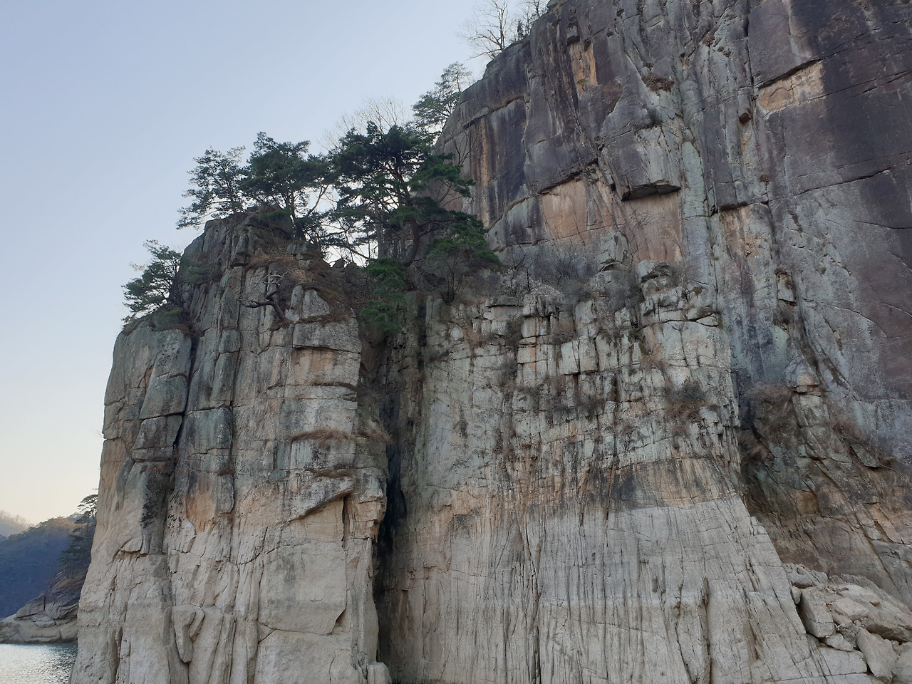 옥순봉의 빼어난 절벽 아래 뉘인