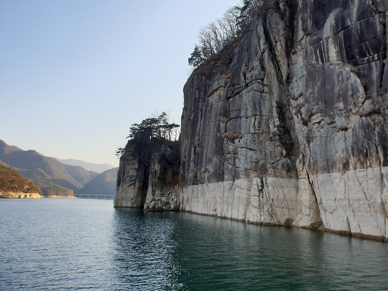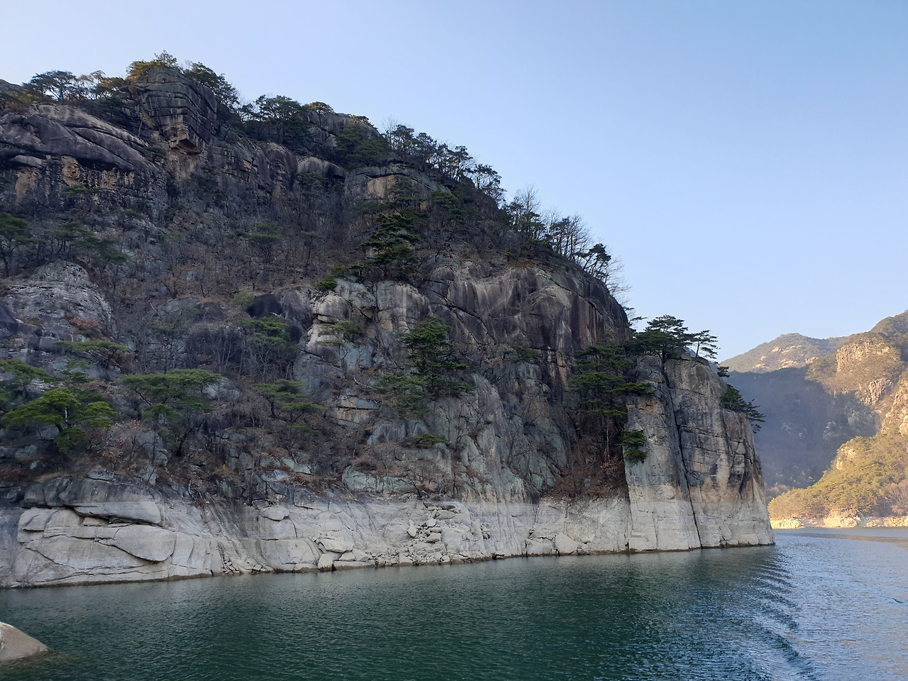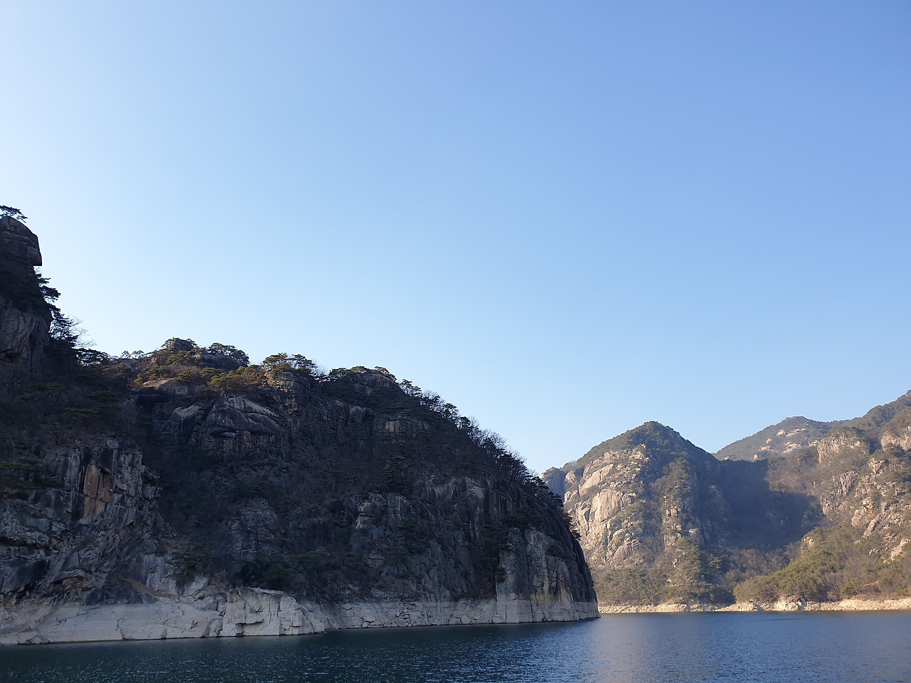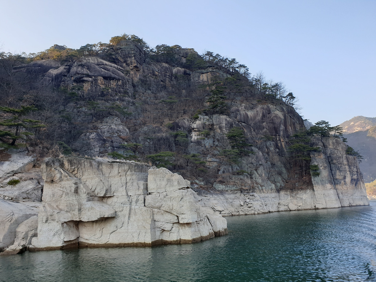 옥순봉의 빼어난 절벽 아래 뉘인