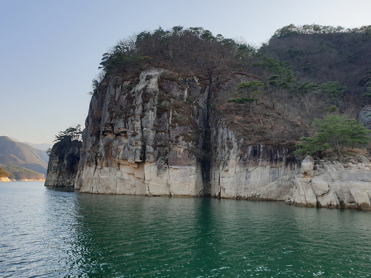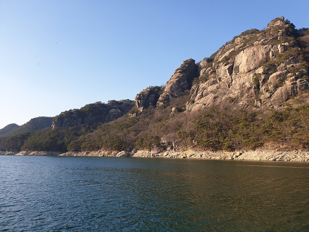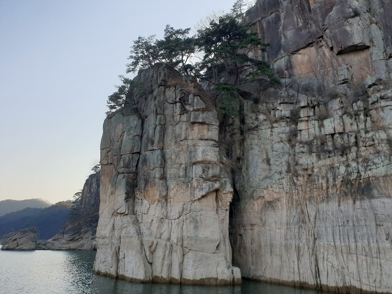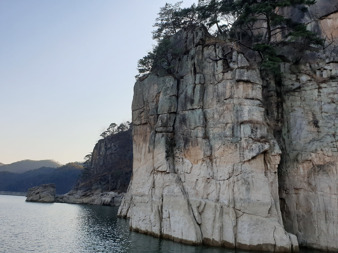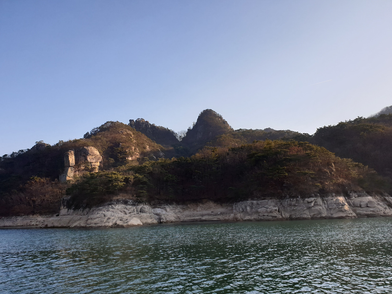 옥순봉의 빼어난 절벽 아래 뉘인