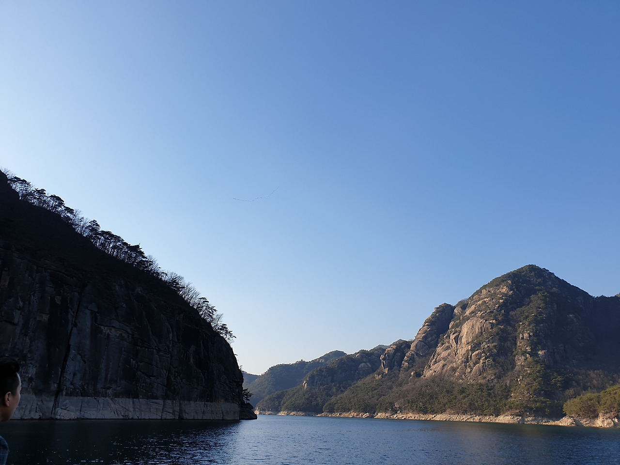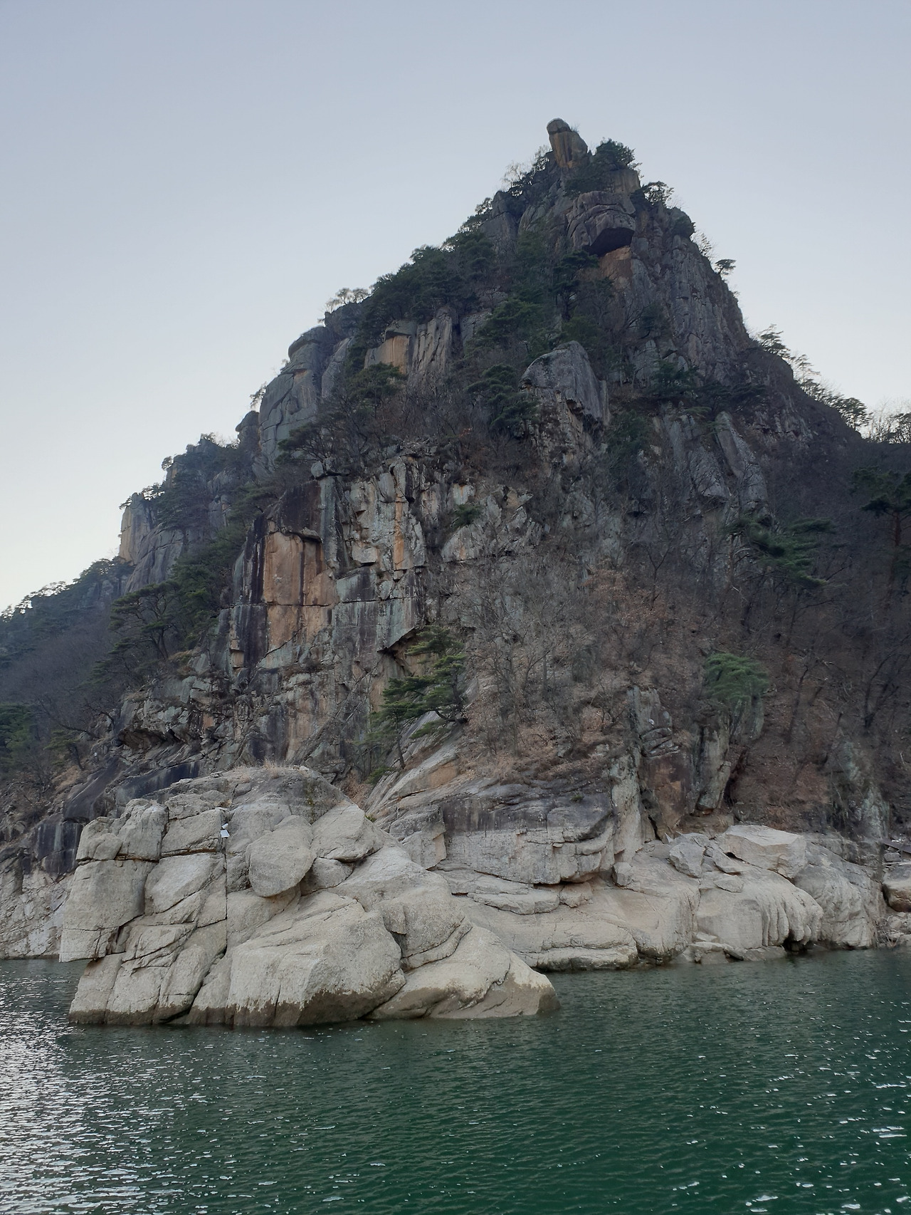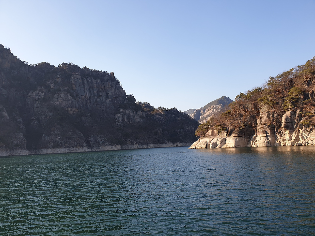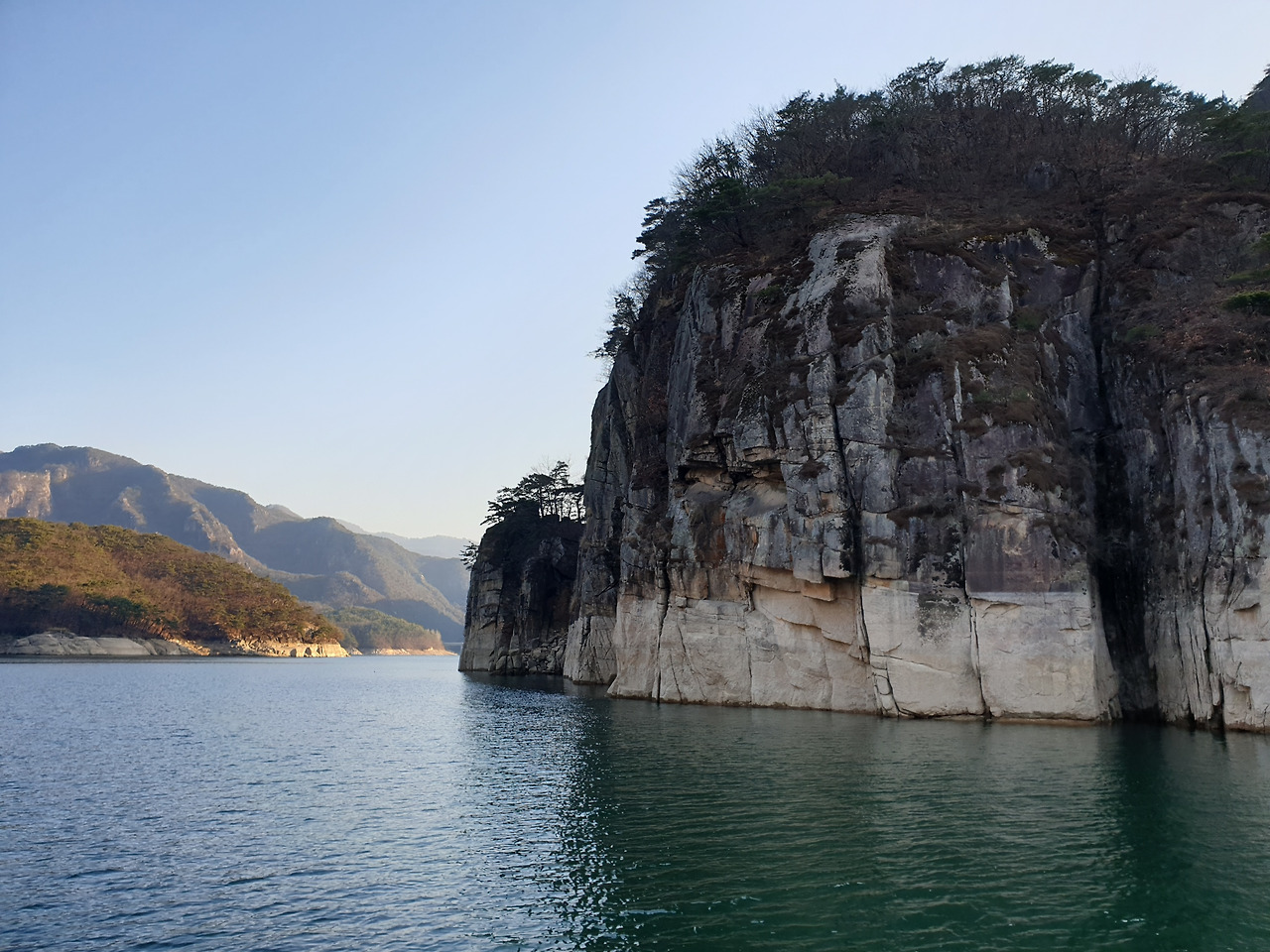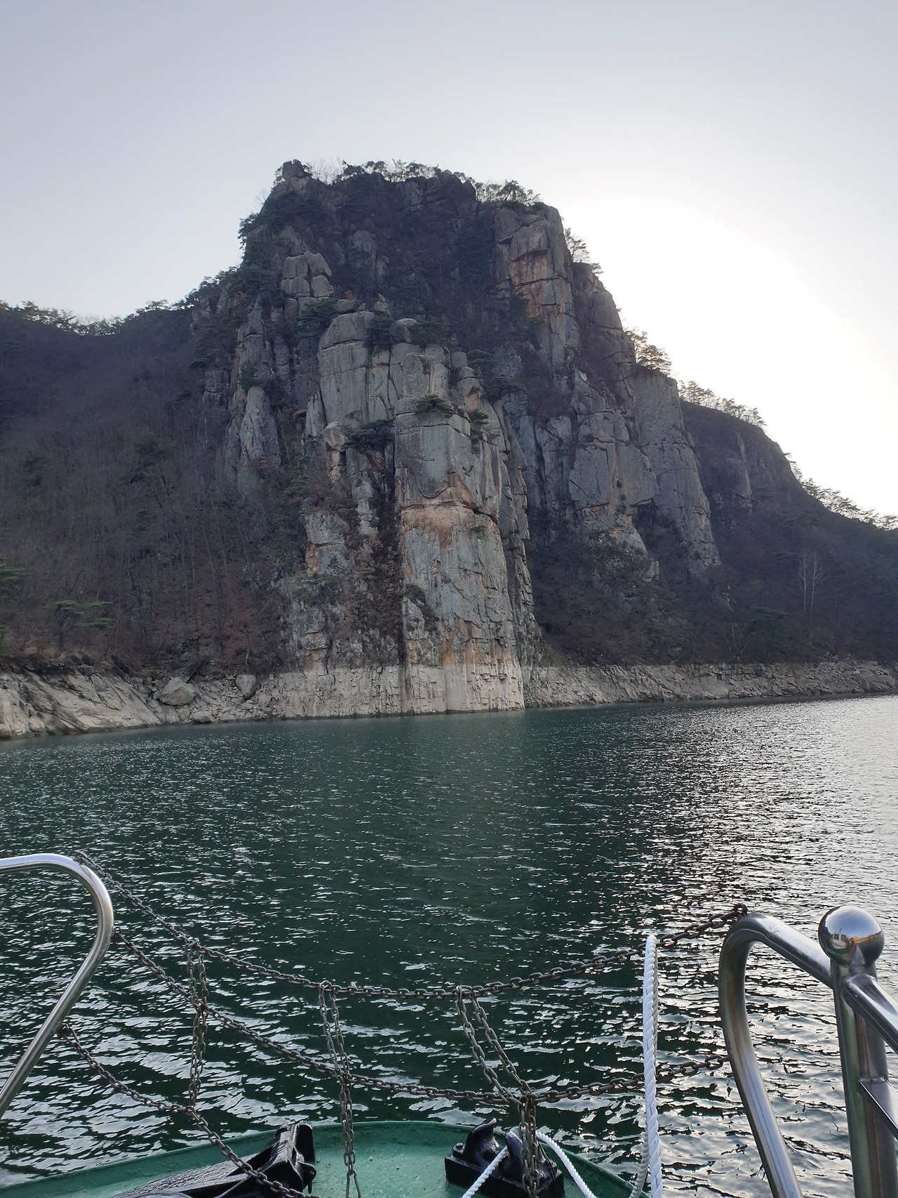 옥순봉의 빼어난 절벽 아래 뉘인