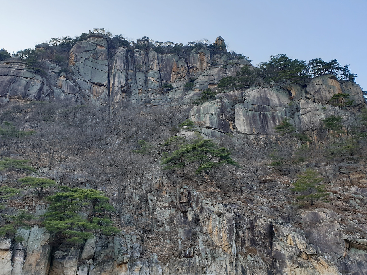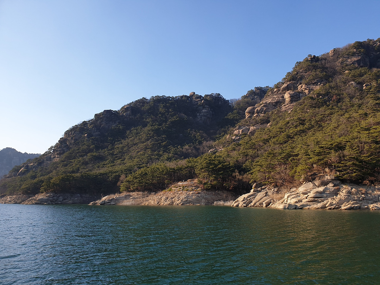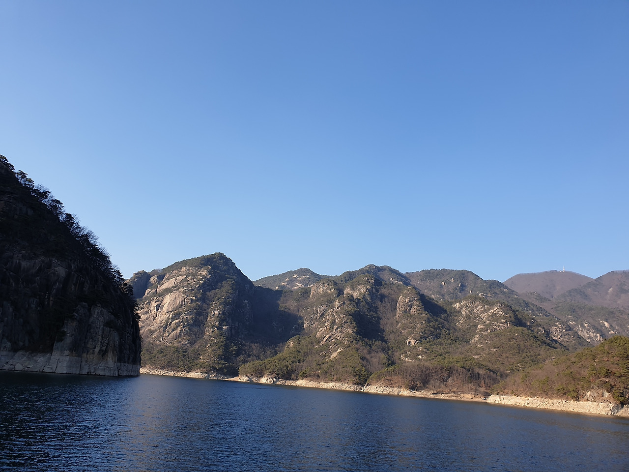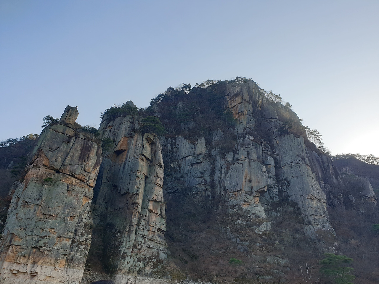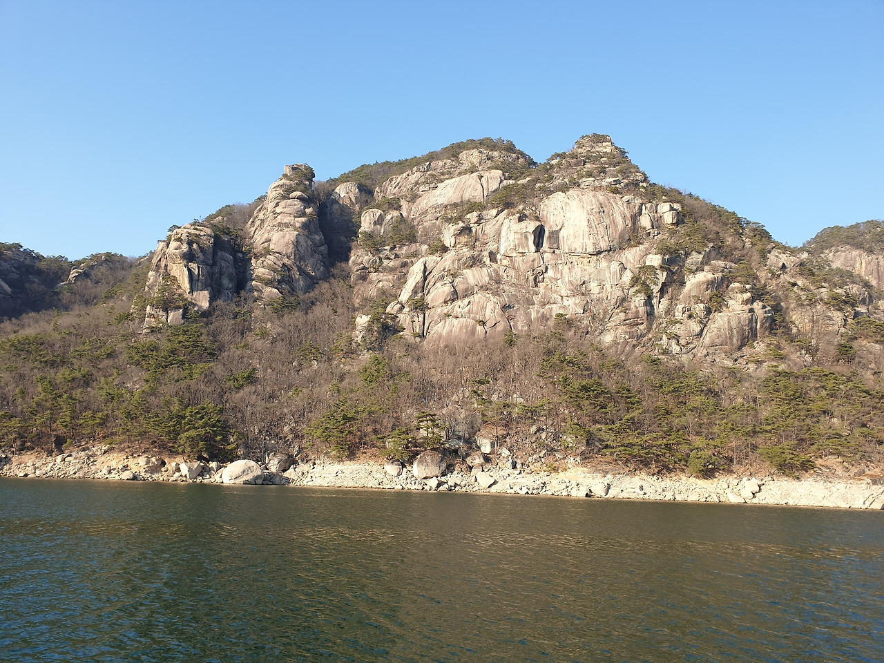 옥순봉의 빼어난 절벽 아래 뉘인