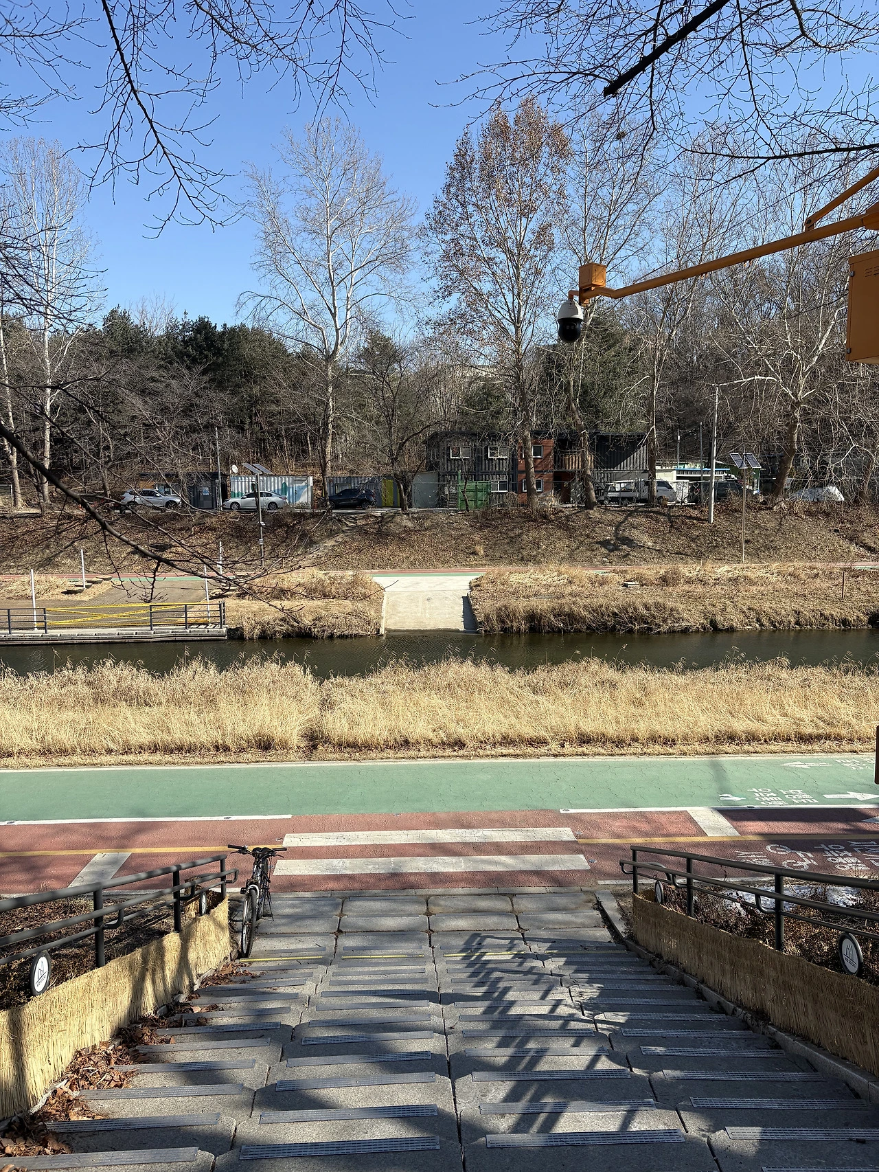교총 입구 쪽 길로 가면 바로 양재천으로 내려갈 수 있는 통로가 있다. 점심 먹고 산책하기에 이보다 더 좋을 수가 없다. 물을 보며 걸을 수 있다니, 빡빡한 일정 가운데 오아시스를 만난 느낌이었다.