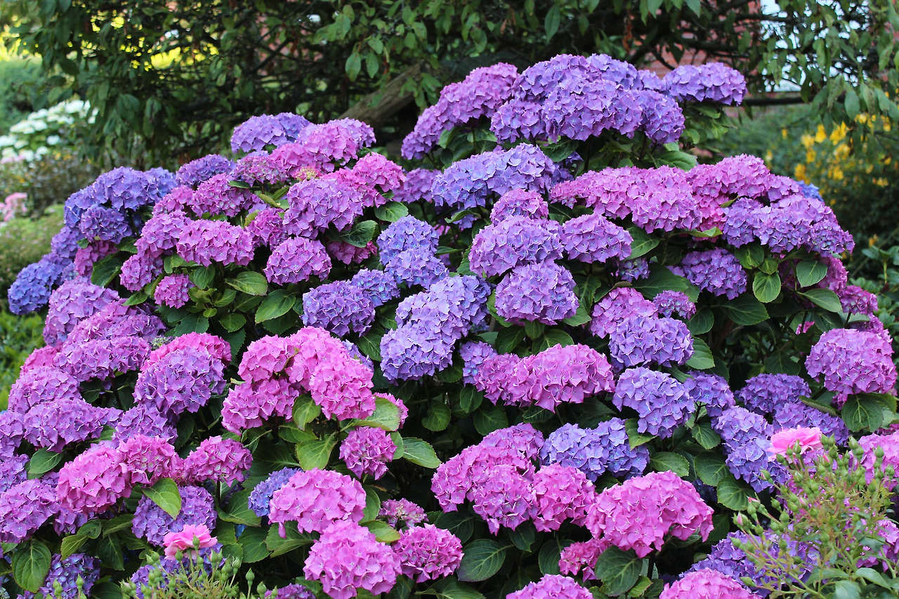초여름에 줄기 끝마다 작은 꽃들이 서로 옹기종기 모여 초록 잎을 배경으로 연한 보랏빛을 띤 동그란 꽃 공이 만들어진다. 꽃마다 4~5개씩 붙어 있는 꽃잎은 꽃받침이 변한 것이다. 꽃 색깔은 자라는 곳의 흙 성질에 따라 조금씩 달라지기도 한다.