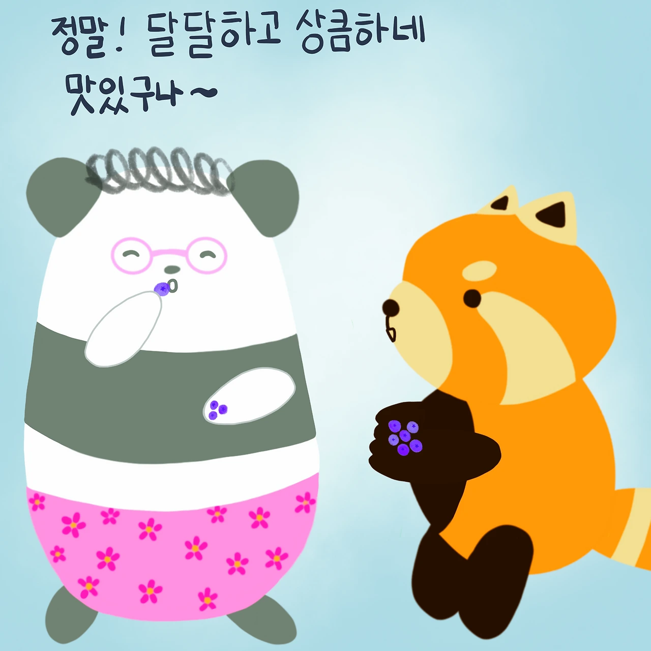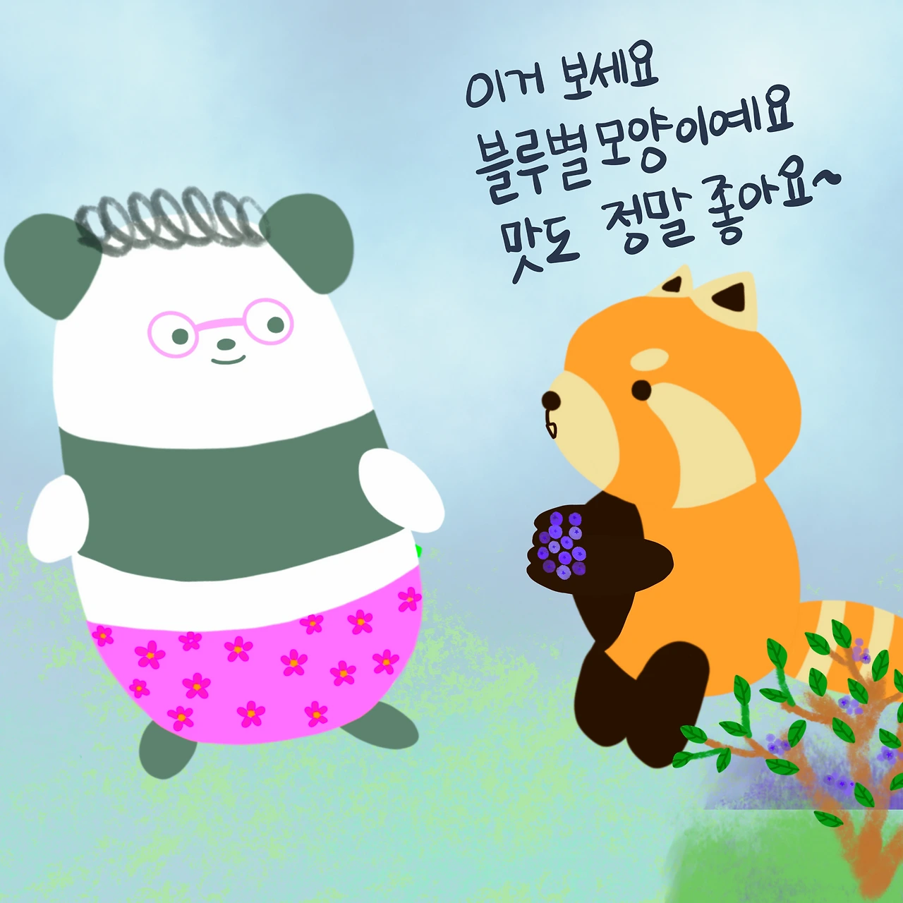 팬더엄마는 래서팬더의 손에 가득한 블루별 열매를 집어서 먹어보고는
