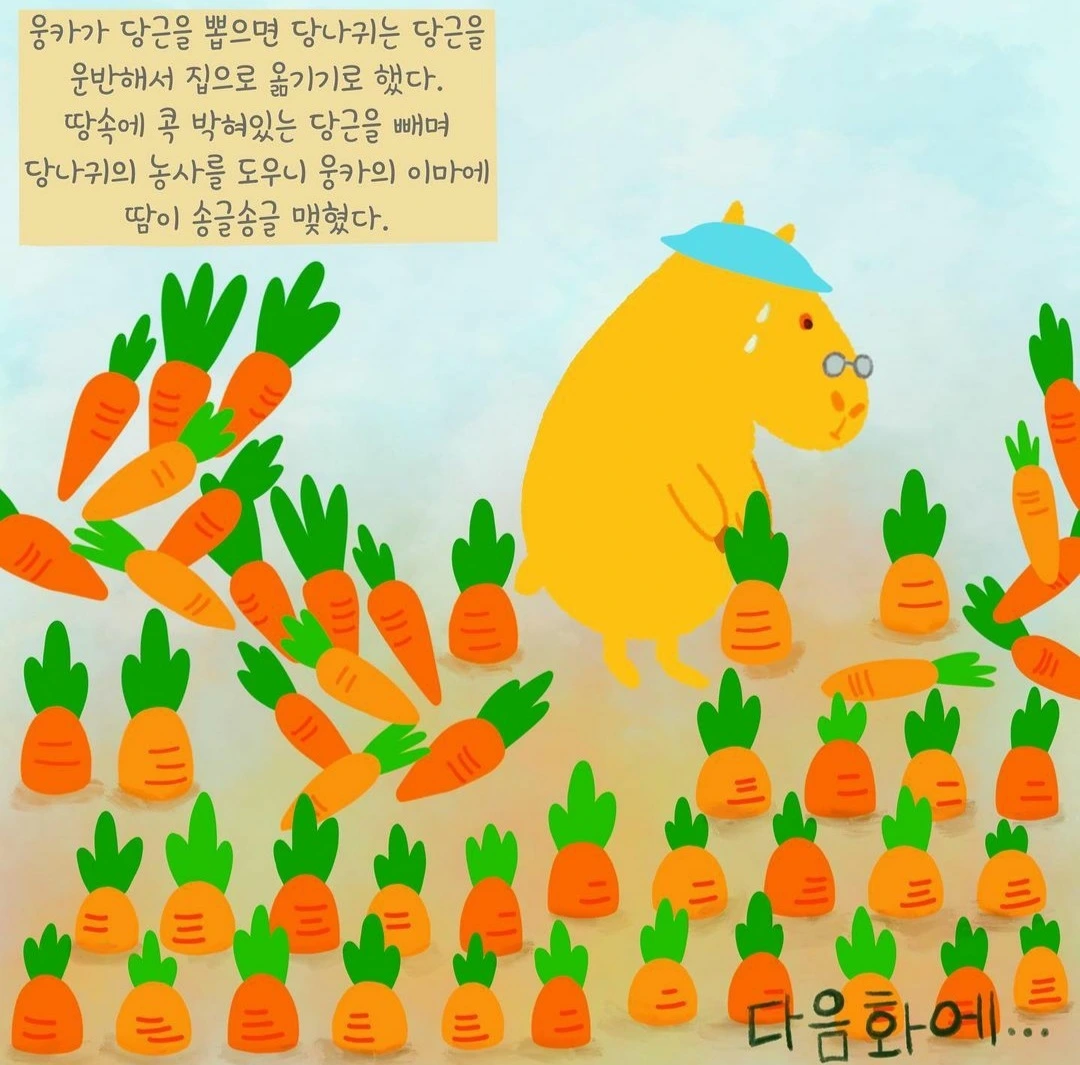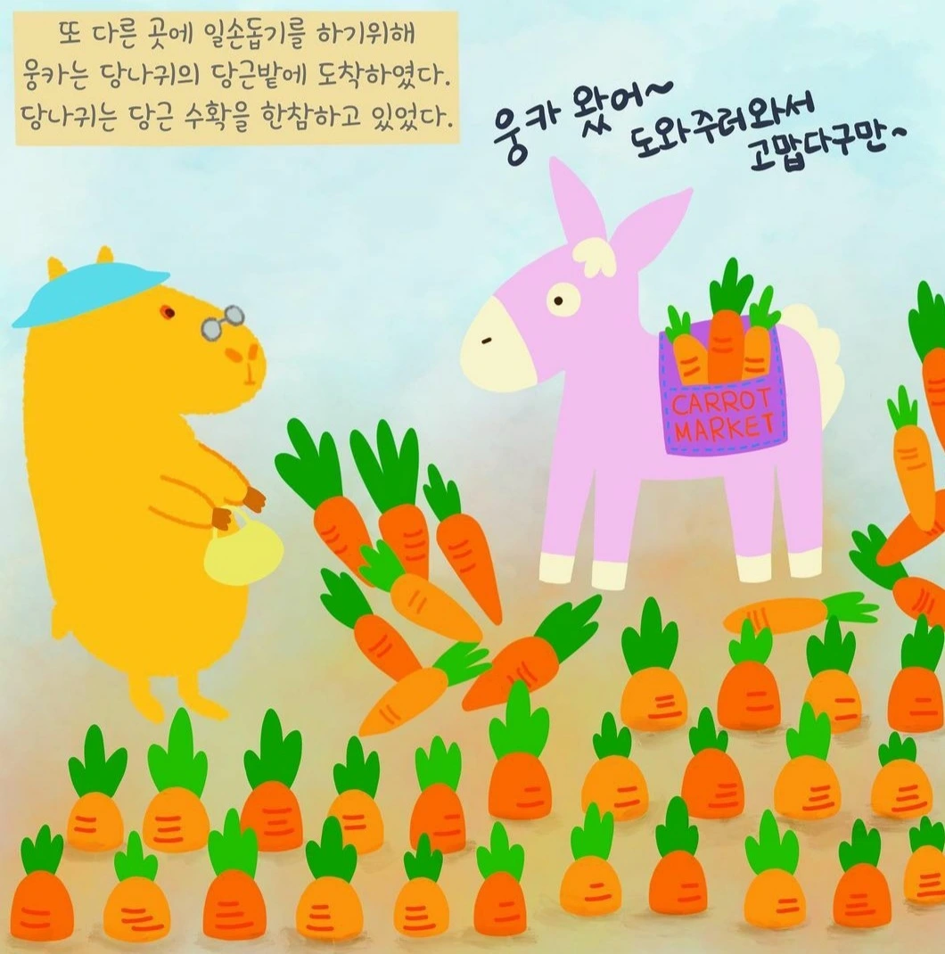 한편 또 다른 곳에 일손을 도와주기로 한 웅카는 당나귀의 당근밭에 도착하였다.