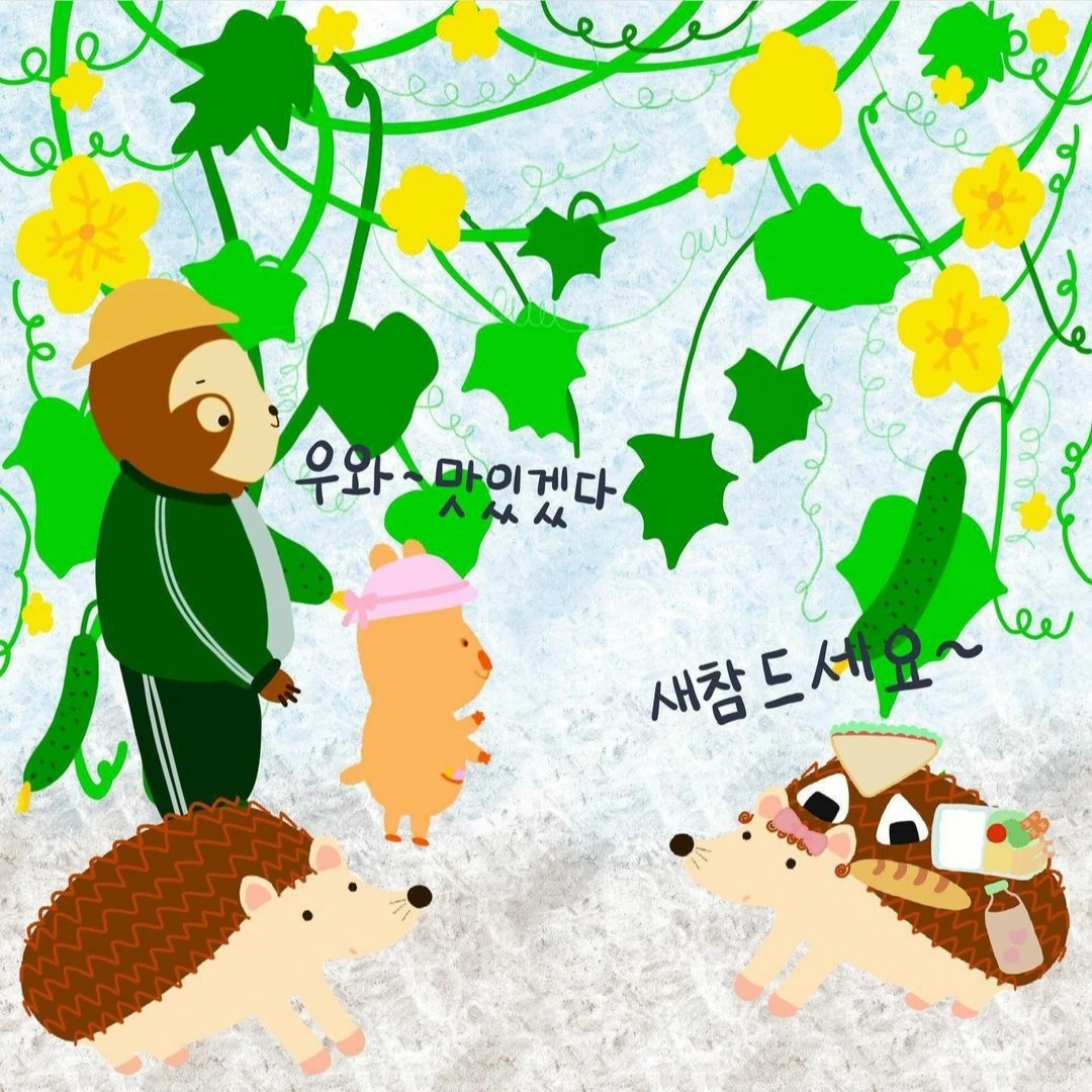 밍카와 늘몽이는 고슴도치아저씨를 도와 가시오이 수확을 열심히 하고 있었다.