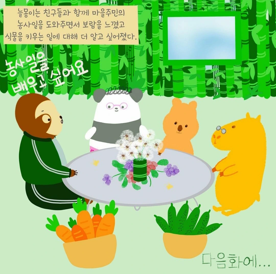 늘몽이는 팬더엄마에게 조심스럽게 “농사일을 배우고 싶어요”
