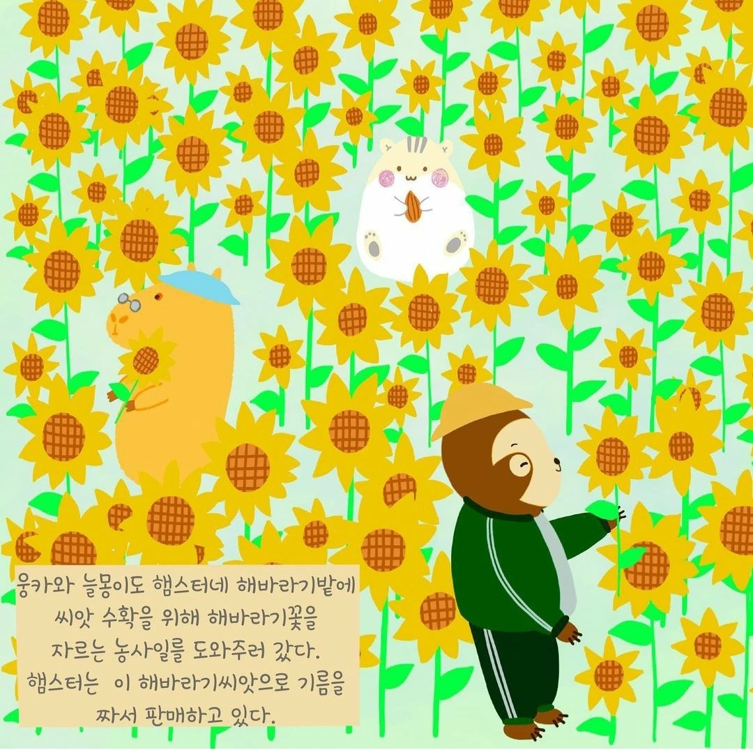 늘몽이는 이번에는 웅카를 따라서 햄스터의 해바라기밭으로 향했다.