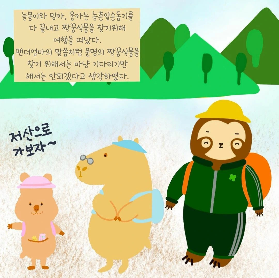 농촌일손돕기를 다 끝내고 늘몽이와 친구들은 짝꿍식물을 찾기위하뉴여행을 떠났다.