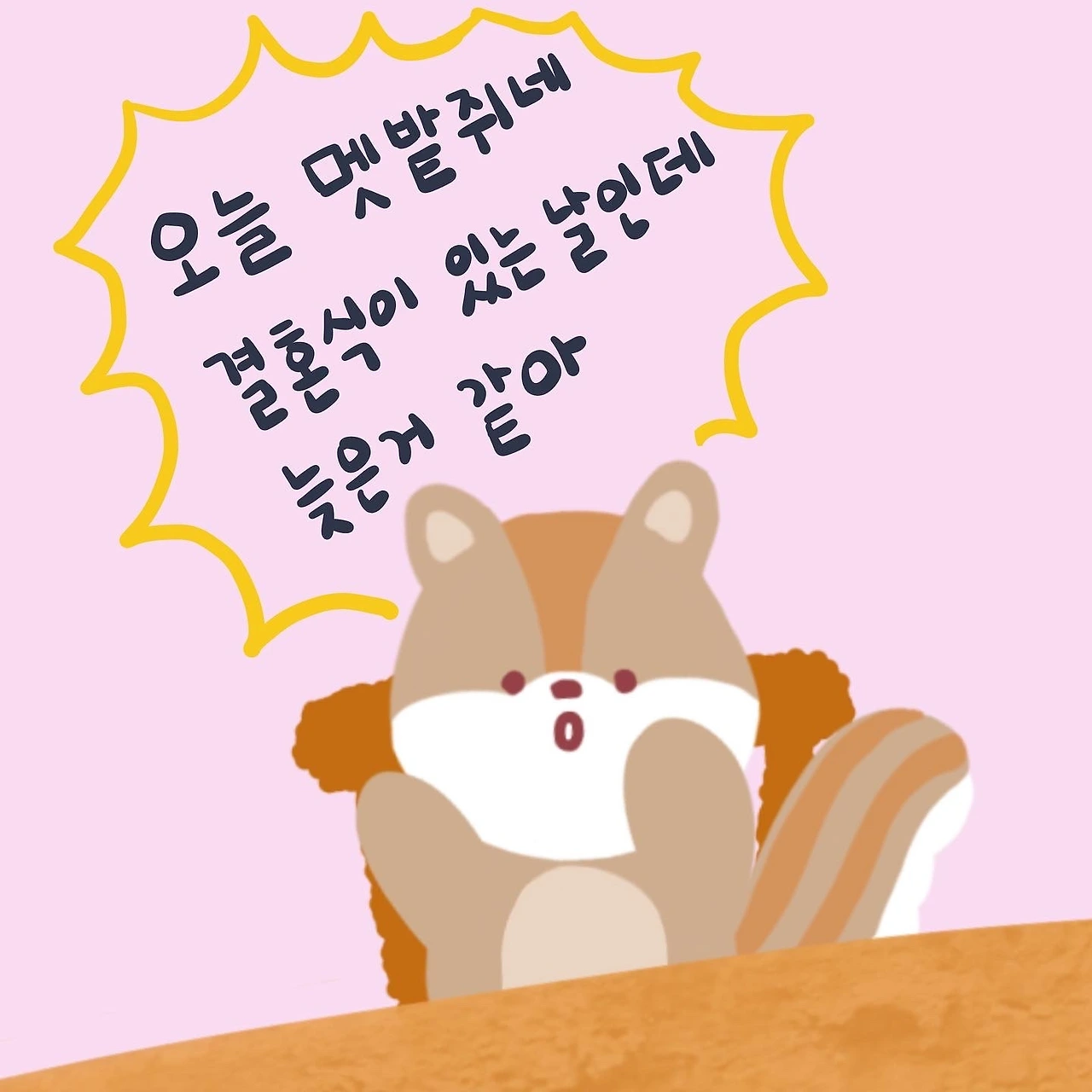 다람쥐는 오늘 멧밭쥐네 결혼식에 참석하기로 했는데 깜빡해서 늦을것 같다고 하였다.