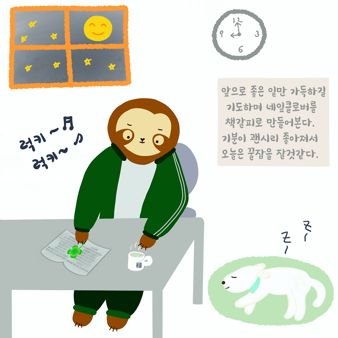 늘몽이는 뭉치가 선물한 네잎클로버를 곱게 책갈피로 만들고는 앞으로 좋은 일만 가득하길 기도해본다.