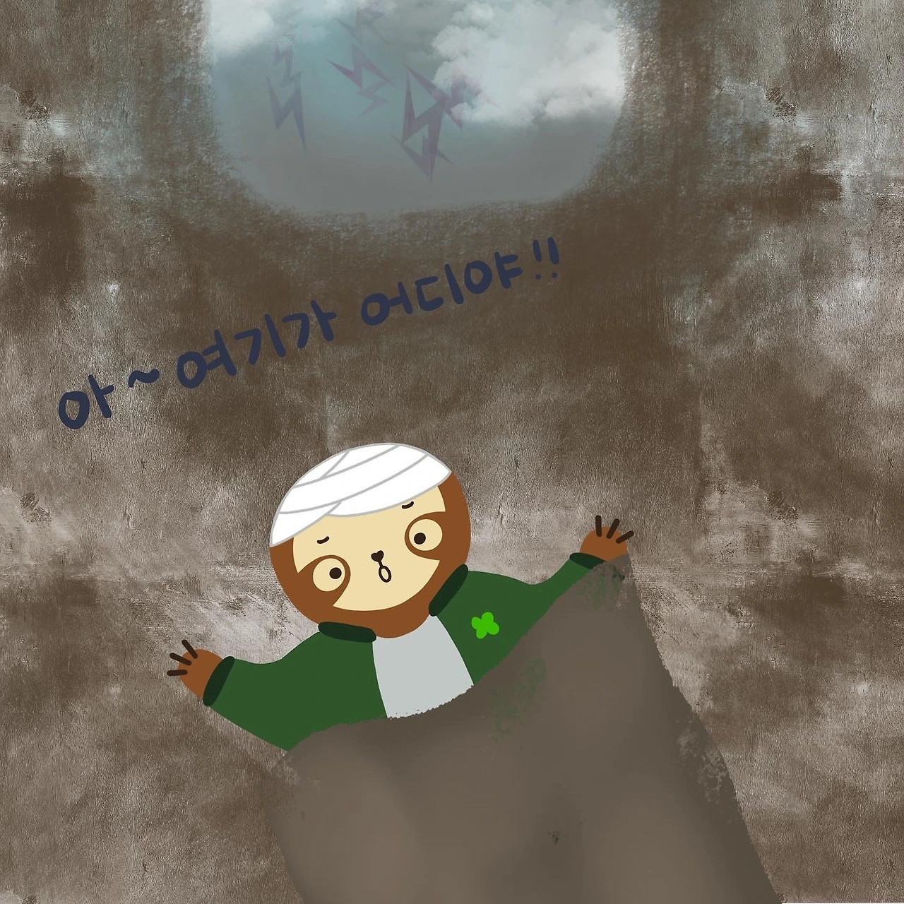 그 해변가 절벽 속 동굴에는 늘몽이가 머리에 붕대를 감고 의식을 잃은채 누워있었다.