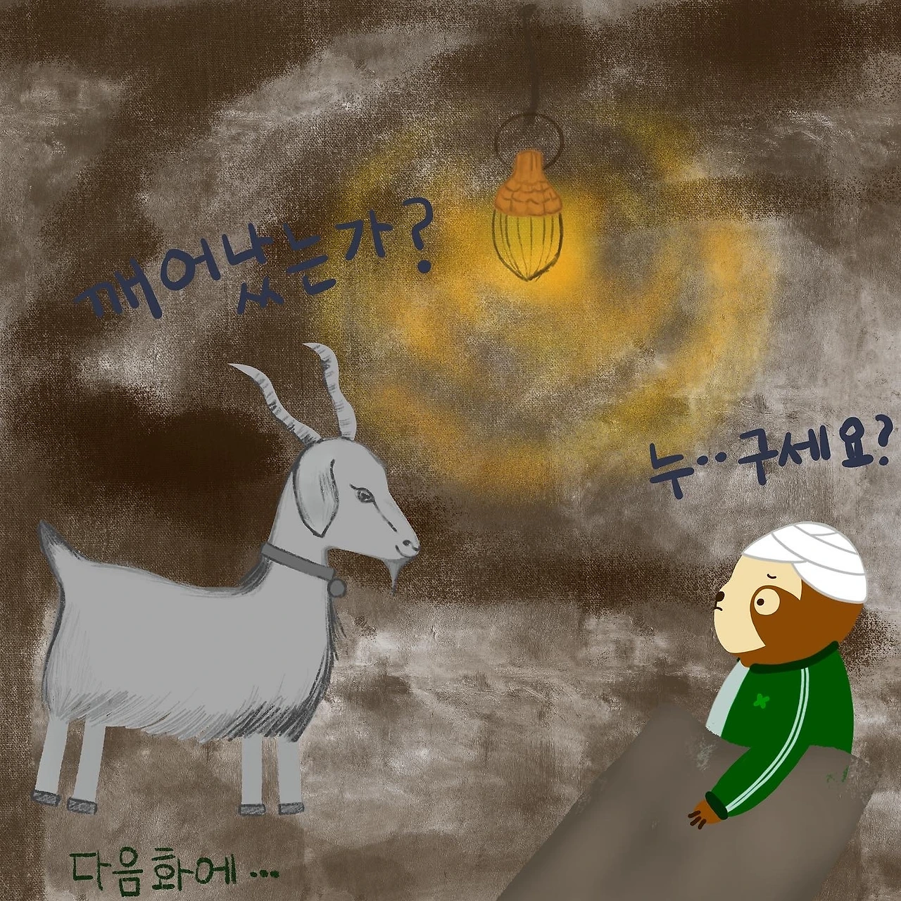 저기 동굴 속 희미한 불빛속에 누가 늘몽이를 향해 걸어왔다.