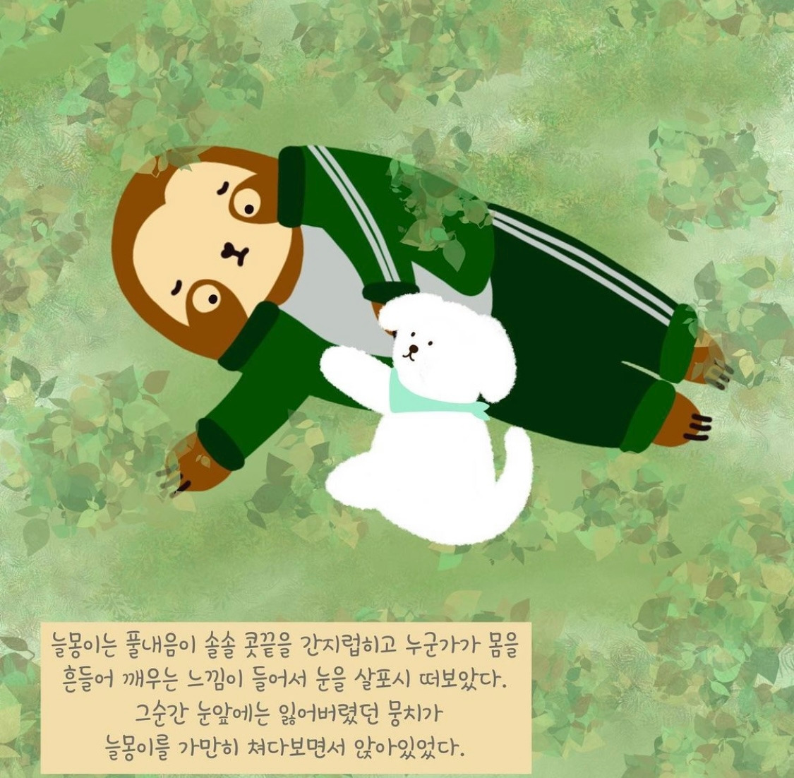 빙글빙글 어지러운 기분이 들더니 어느 순간 풀내음이 콧끝을 간지럽히고 포근한 곳에 누워있는 기분이 들었다.