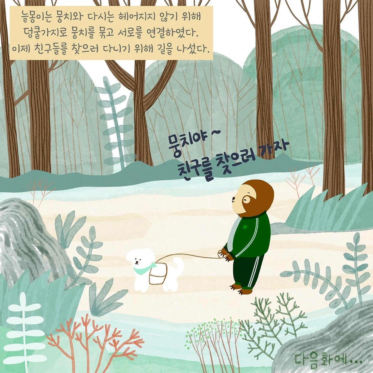 “뭉치야 뭉치야 우리 이제 친구들를 찾으러 가자”