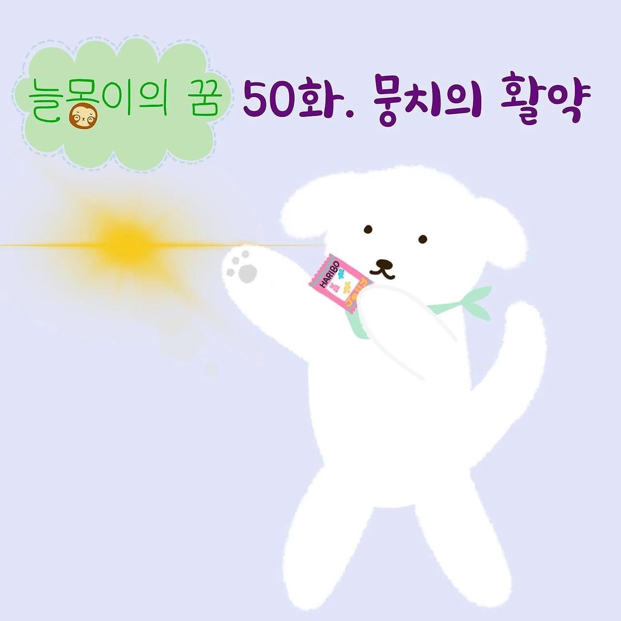 뭉치는 코를 벌렁벌렁 거리며 과자봉지의 냄새를 맡더니 갑자기 뛰기 시작했다.