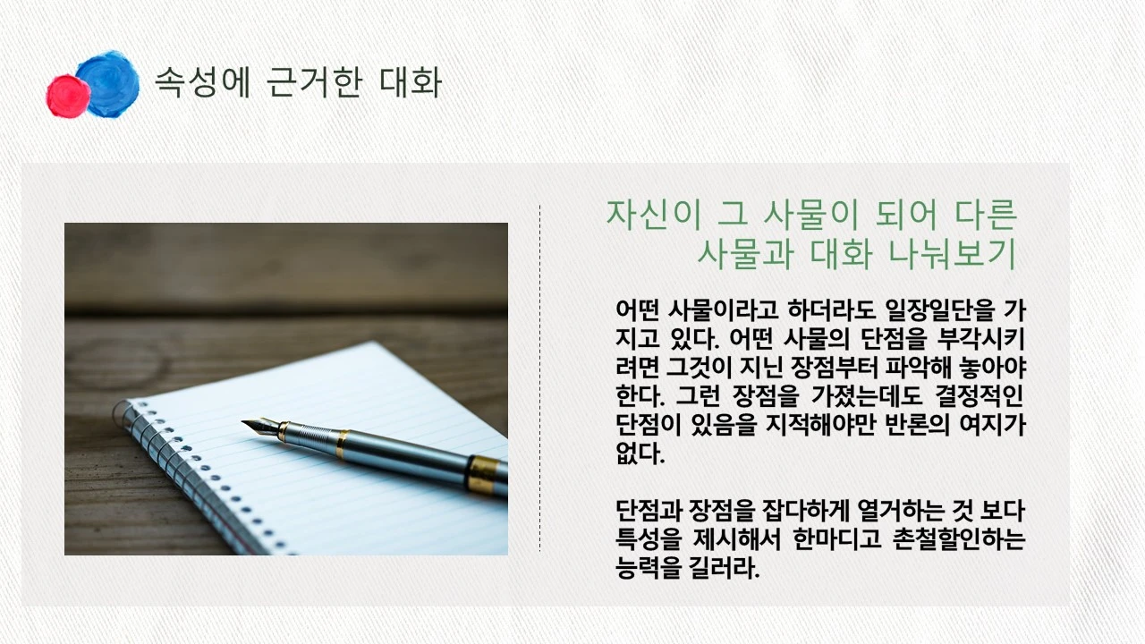 대화 속에 장점과 단점이 자연스럽게 드러났다