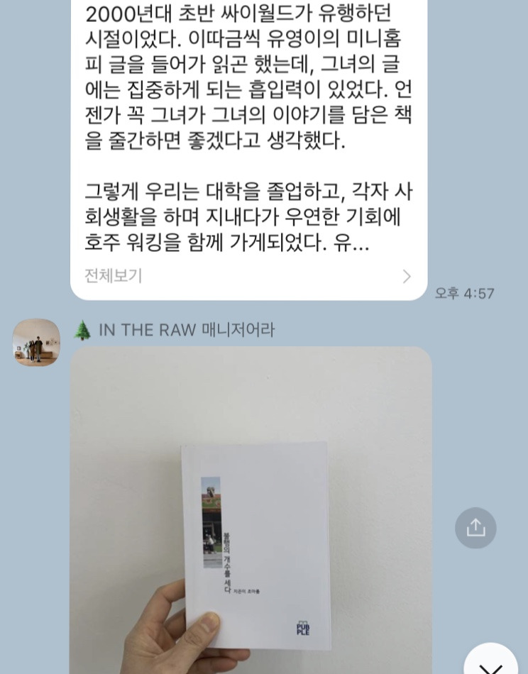 (친구는 내 책을 받은 날 긴 글을 써서 보내줬는데 근래 받은 어떤 선물보다 감동했다.)