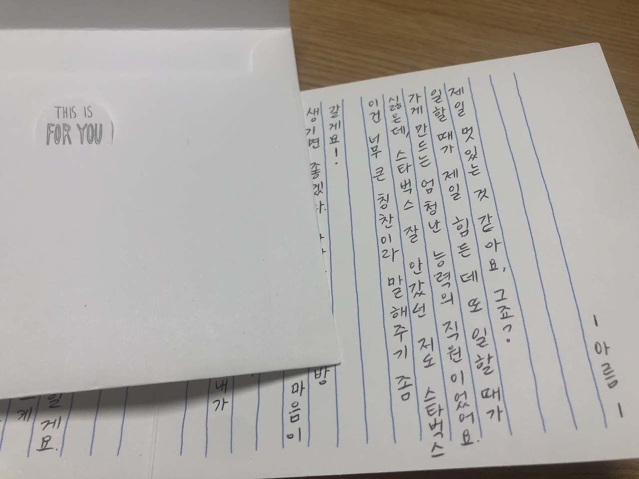 요즘 손글씨로 편지나 카드 쓰는 사람들 별로 없지만, 여전히 나는 직접 쓴 글씨가 든 봉투를 주고받는 게 카카오톡 선물보다 좋다. 나, 옛날 사람.