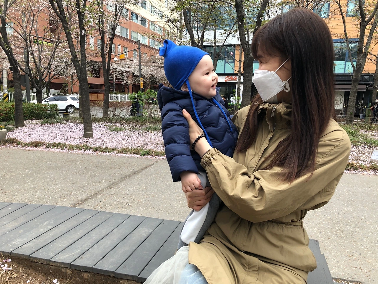 최윤미: 지금 9개월 되었고요. 대답하기 민망하지만 항상 이뻐요(웃음). 제일 예쁠 때는 윙크할 땐데 제가 열심히 가르쳤어요. 요새 사진 찍어 주느라 정신이 없는데 그래서 며칠 전엔 핸드폰 저장공간을 늘렸습니다. 또 좋은 건, 저만 보면 활짝 웃어주는 거예요. 자기 전에도 일어나서도 눈만 마주쳐도 꺄르륵 웃는데, 엄마라는 이유 하나로 이렇게 웃어 주다니 매일 감동해요.