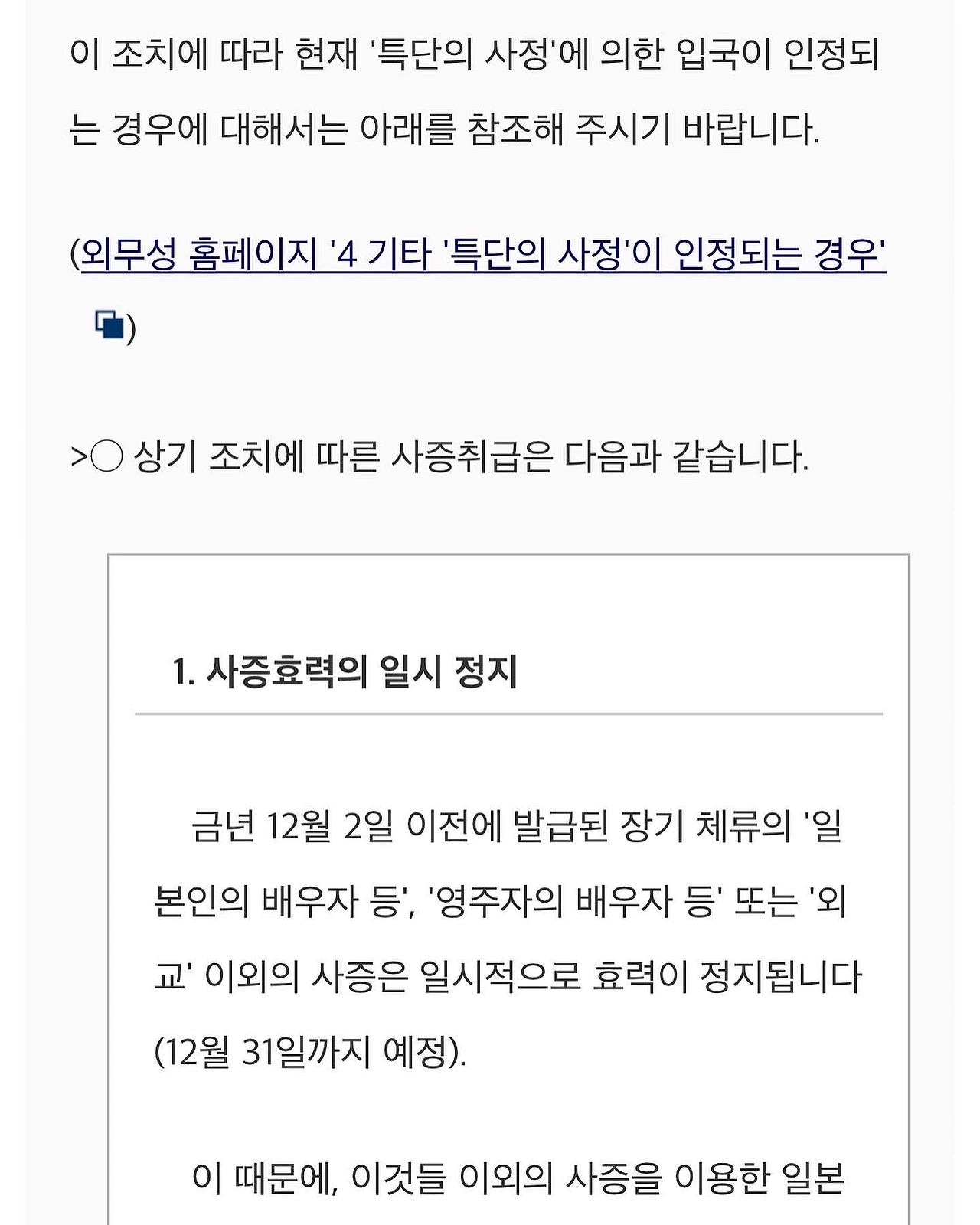 12월 4일, 이틀 후 일본 출국 예정이었던 저는 일본인 배우자 단기 방문 비자를 취득했음에도 불구, 일본 정부의 오미크론 변이 바이러스에 대응한 긴급 피난 조치로 인해 입국이 거부된 사실을 오늘 알게 되었습니다.
