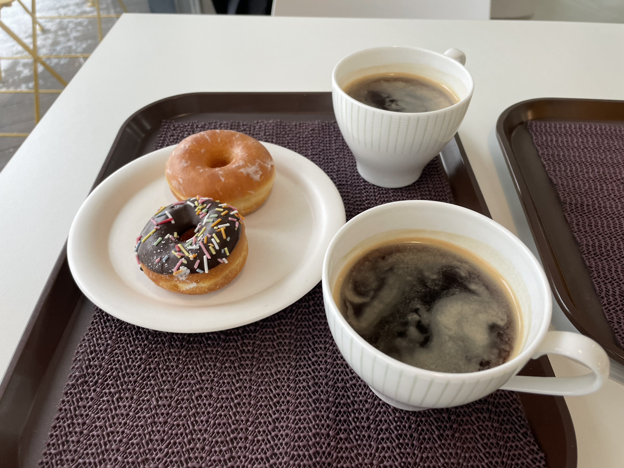 눈이 와서 점심에 밀크티를 마셨다. 창 밖을 보며 눈 내리는 걸 보고 있는데 카페 사장님이 도넛이랑 따뜻한 커피가 담긴 쟁반을 가져와선 맛보라고 하신다.