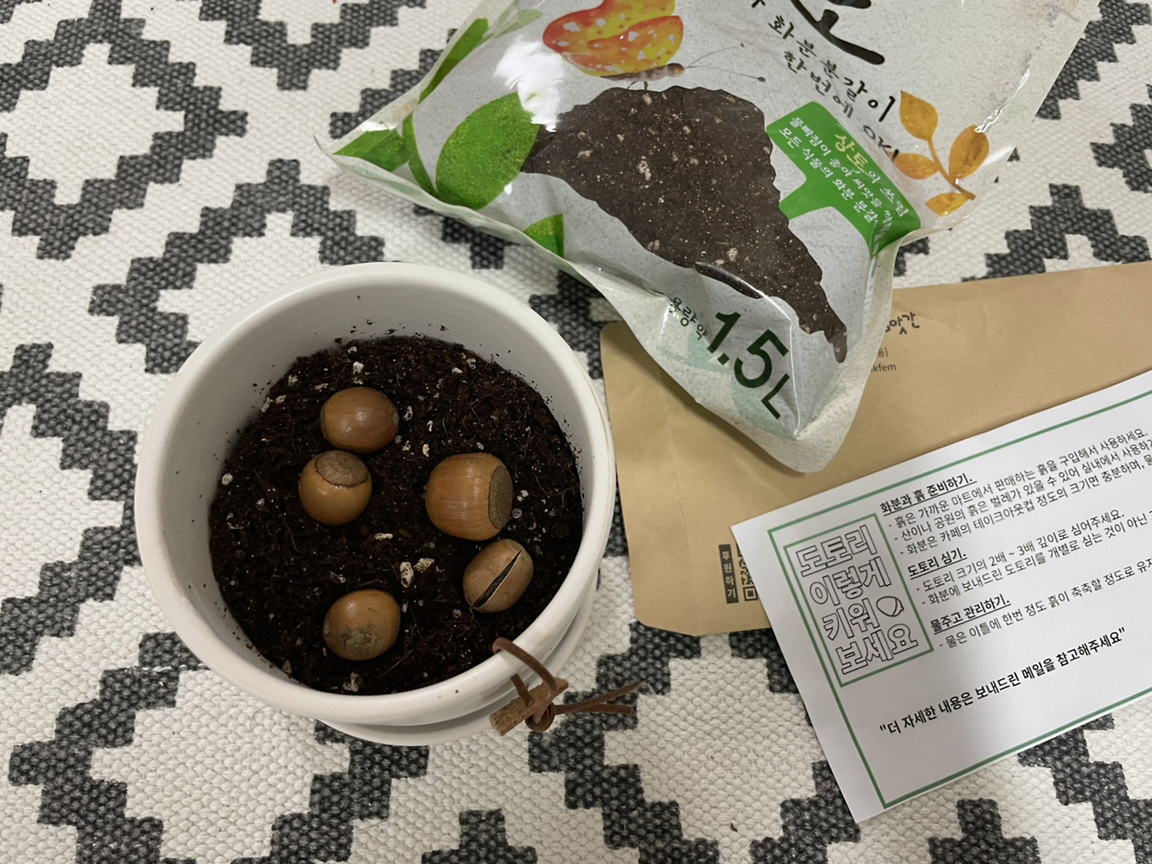 도토리를 심었다. 나무가 되면 숲으로 돌려보낸다는 야심 찬 계획으로.