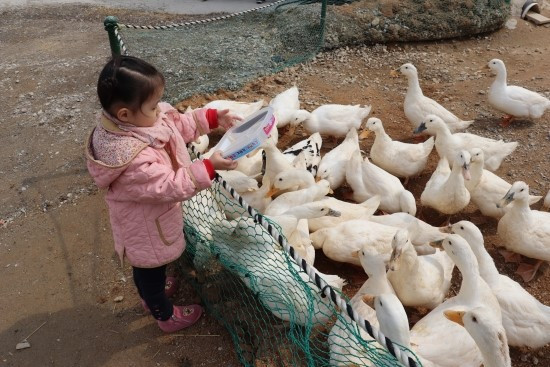 메추리 모이 주기, 병아리 모이 주기, 토끼, 닭, 햄스터, 기니피그, 아기돼지, 송아지, 물고기 등 다양한 모이 주기 체험이 있었고 첫째가 엄청 좋아했다. 아이가 어찌나 열심히 먹이를 주던지 돈이 하나도 아깝지 않았다. 진지한 얼굴로 먹이 세 통이 동나도록 끝없이 먹이를 주고 나서야 만족스러워하던 첫째였다. 아이가 끌려갈 정도로 살벌하게 송아지가 우유를 빨았는데, 아이는 송아지 우유 주기가 가장 재밌었다 하였다. 둘째는 뱃속에서 나의 놀라움을 느꼈을까.