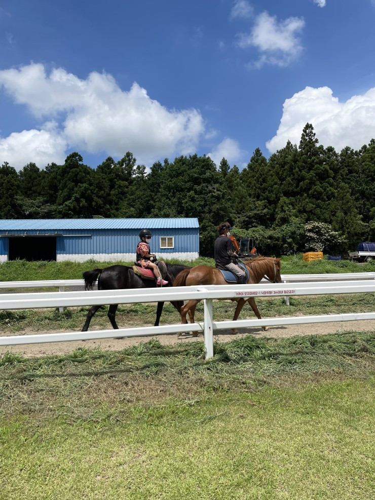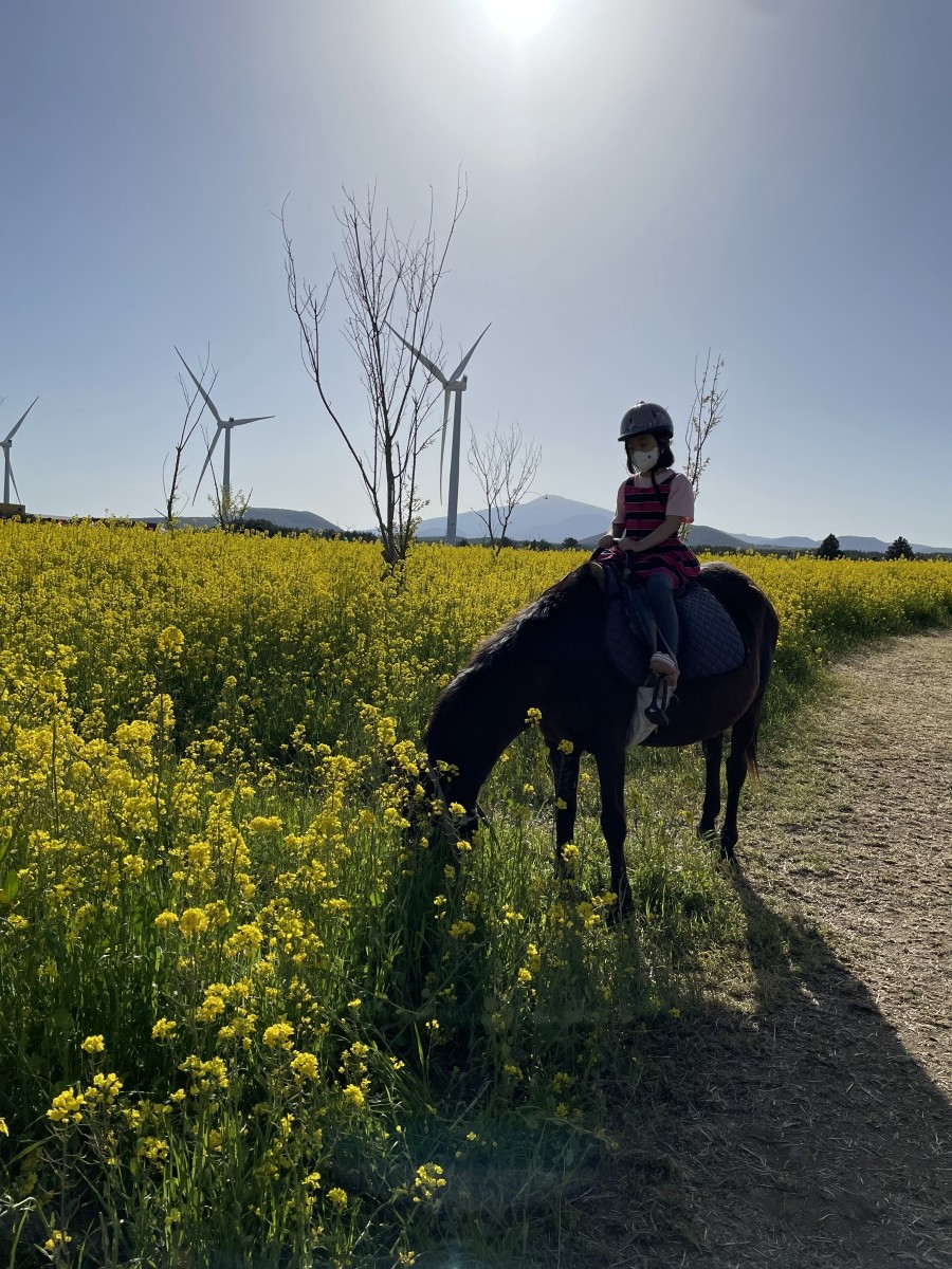 조랑말 체험 공원은 <봄의 제주, 1박 2일> 때 갔던 곳이다. 유채꽃이 만발한 늦봄에 가볼 것을 추천한다. 유채꽃밭을 말과 함께 살랑살랑 걸으며 말에게 당근도 주고 하다 보면, 아이들도 부모도 힐링의 시간을 보낼 수 있을 것이다. 여전히 말타기를 두려워하는 둘째는 이번에도 승마에 성공하지 못했지만, 당근을 주면서 깔깔댈 수 있었다.