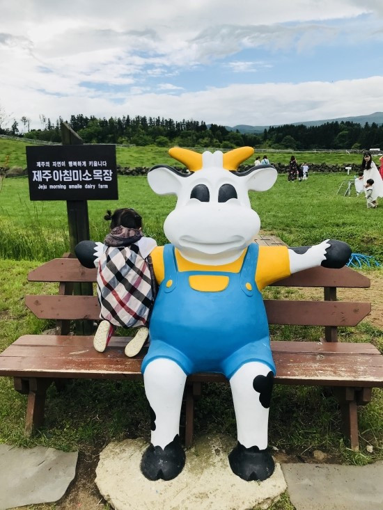 가장 기억에 남는 곳은 아침미소 목장이다. 다섯 살 첫째와 만삭 즈음의 둘째와 갔다. 조금 어린아이들이 놀기에는 좋은 곳이다. 아기자기하고 포토 스폿이 많아 4-5세 정도가 가기에 좋다. 5월의 푸릇푸릇한 제주가, 뛰노는 아이들과 무척 잘 어울렸다. 아마도 가장 기억에 남은 이유는, 날이 좋았고, 첫째가 소에게 우유를 줄 때 너무 행복해 보였기 때문이다. 아이는 이후로 어딜 가나 먹이 주기에 진심이었다.