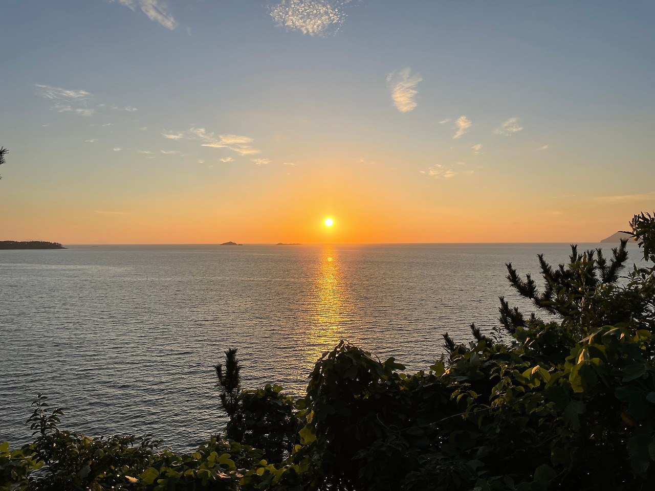 서해 바다의 일몰을 바라보며 저녁을 먹는데, 숙소에서 바라본 일몰이 너무도 예뻤다. 동해의 일출도 좋지만, 서해의 일몰도 꽤 좋았다. 개인적으로 일몰을 더 좋아라 한다. 하루를 마감하며 아스라이 사라져 가는 해를 바라보며 멍 때리는 시간이 좋다. 서해 바다는, 지는 해가 발갛게 수평선을 물들이며 길게 그림자를 드리우는 시간을 적나라하게 경험할 수 있었다.
