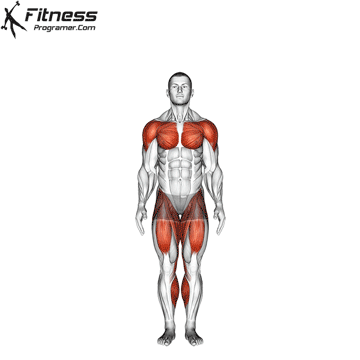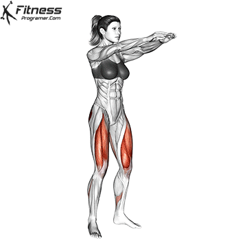 머리와 허리를 곧게 유지하고 양발 간격을 어깨너비에 위치시킨 상태에서 앉았다 일어서는 동작이며, 허벅지 부위의 대퇴 사두근(quadriceps)을 강화한다. 응용 동작으로는 스모 자세 또는 와이드 스탠스로 스쾃을 진행할 수 있는데, 내전근과 둔근에 더 강한 자극을 느낄 수 있다. 점프까지 이어지는 동작은 열량 소모량이 더욱 많아 보다 높은 강도의 전신 운동에 도움이 된다.