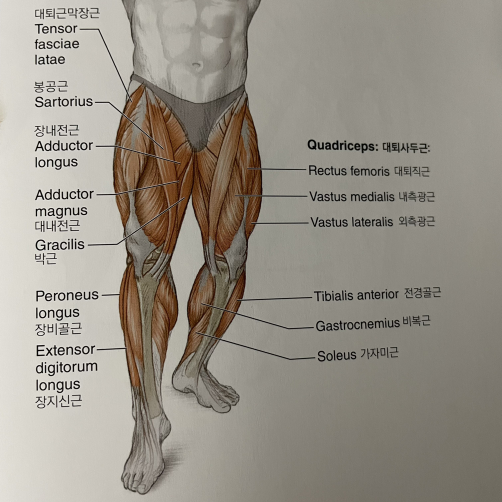 우선 개정된 해부학 용어가 아닌 보디빌딩 용어에 익숙해질 필요가 있어 보디빌딩 아나토미 책을 하나 샀다. 내가 배운 해부학책에는 실제 의학 용어가 한글로 거의 바뀌어 나온다. 예를 들어 rectus femoris muscle은 '대퇴직근'이 운동에서는 익숙하지만 '넙다리곧은근'이라고 바뀐 지 오래다. 흔히들 알고 있는 biceps brachii muslce도 이미 '상완이두근'으로 다들 알고 있지만, 대학해부학회의 정식 의학 용어는 '위팔두갈래근'이다. 내가 해부학을 배운 지 20년이 넘었는데도 일반적으로 사용되는 용어가 바뀌지 않는 것을 보면 뭔가 근본적인 개선이 있어야 하겠지만, 당장은 현 상황에 맞추어 내가 옛 용어에 익숙해져야 한다. (하긴, 딴에는 좋은 취지로 한글 용어로 실컷 바꾸어 놓은 것을 다시 한자로 바꿔 쓰는 것도 어이없겠지.)