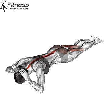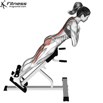 척추 기립근을 강화하기 위한 운동이다. 백 익스텐션 벤치에서 넓적다리를 지지하고 발목을 패드 밑에 고정시킨 채 얼굴이 아래로 향하게 눕는다. 상체를 90도로 구부려 상태가 매달린 상태로 시작하며, 상체를 올린다. 양손은 가슴 앞에서 팔짱을 낀 자세로 해도 좋고 등 하부 뒤에서 깍지를 껴도 된다. 매트에서 배를 깔고 엎드린 상태에서 양손은 허리에 올리거나 머리 뒤편으로 깍지를 낀 채 허리와 엉덩이 힘을 이용하여 상체와 하체를 뒤로 천천히 일으켜 세우면 기구 없이도 운동이 가능하다. 근육 수축 시 호흡은 내쉬고, 근육 이완시 호흡을 들이마신다. 여기서 더 나아가 팔을 W자로 만들면서 일어나면 등 근육도 함께 강화할 수 있다. 익숙해지면 매트에서 도 덤벨 1kg 정도 중량을 들고 W를 만들면서 일어나는 응용 동작을 해보자. 척추기립근뿐만 아니라 광배근과 능형근까지 강화하는 효과가 있다.