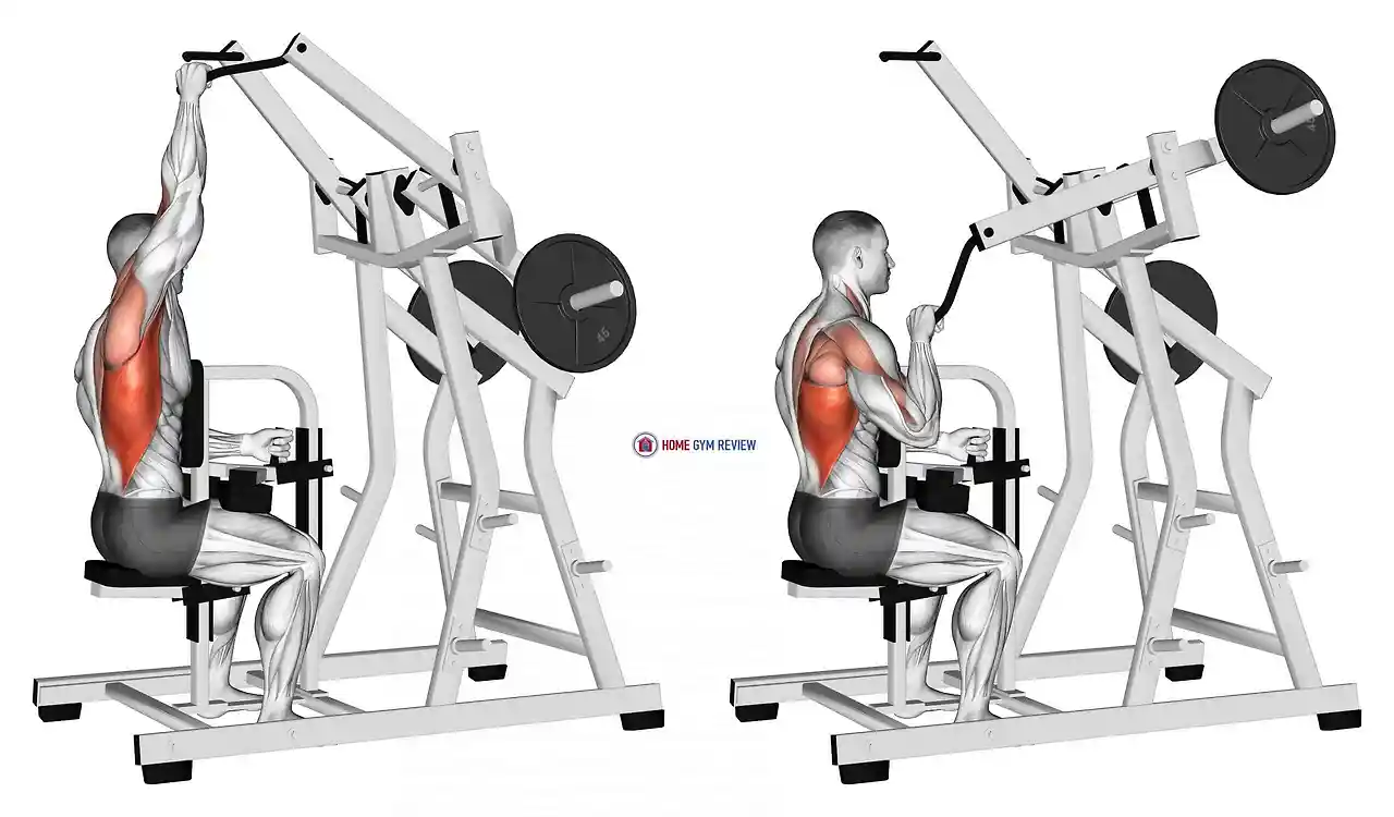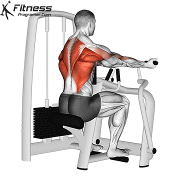 팔을 몸의 앞쪽으로 뻗은 채 머신의 핸들을 언더로 쥔다. 머신에 가슴 패드가 있으면 몸통을 패드에 대고 지지한다. 핸들을 상복부 쪽으로 당기되, 척추는 곧게 편 상태를 유지하면서 등 근육을 조여 준다. 주동근육은 광배근(Latissimus dorsi)이며, 승모근(Trapezius), 대능형근(Rhomboid major), 후면삼각근(Posterior deltoid) 등이 발달하게 된다. 견갑골(scapula) 사이를 콱 조여준다는 느낌으로 하면서 등을 계속하여 인지해야 한다.