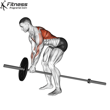 자세를 안정화하기 위한 노력을 덜 요하는 응용 동작이다. 바의 한쪽 끝이 고정된 지점을 중심으로 움직이기 때문. 발을 바의 양측에 위치시킨 채 바에서 부하가 걸린 쪽을 향해 선다. 척추를 곧게 펴고 무릎을 약간 구부린 상태로 T-바를 들어 올린다. 상하체는 고정시킨 채 T-바만 들었다 내렸다 하며 등근육의 수축과 이완을 느낀다.