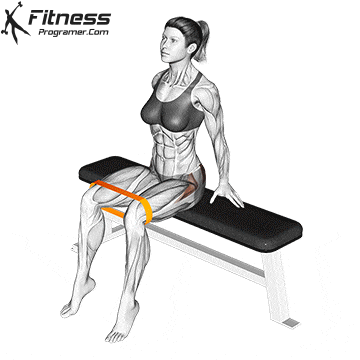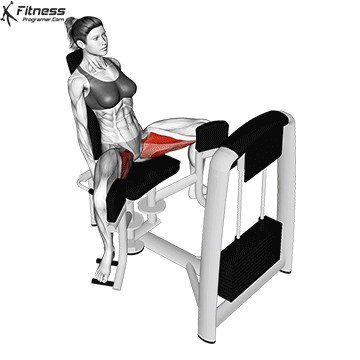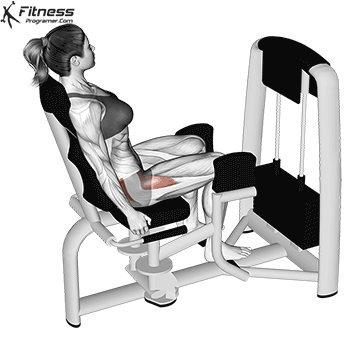 머신에 앉아 무릎을 90도로 구부리고 발목을 롤러 패드 밑에 둔다. 발등은 몸 쪽으로 다소 당긴 상태로 다리를 위로 들어 올려 무릎이 펴지도록 한다. 이때, 과신전되지 않도록 주의한다. 대퇴사두근의 힘을 느끼면서 다시 시작 자세로 다리를 내린다. 만약 집에서 운동을 한다면 오른쪽 이미지와 같이 밴드를 이용해 보자.