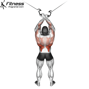 정확한 명칭은 잘 모르겠지만 어깨 후면을 강화하는 동작으로, 크로스로 머리 위로 케이블을 잡고 끌어내린다. 케이블 동작들은 자유도가 높은 만큼 정확한 동작을 하기에 어려움이 있어 지도 하에 동작을 익히는 것을 권한다. 케이블과 스미스 머신은 기본 동작들을 많이 알면 알수록 여러모로 활용도가 높은 듯하다.