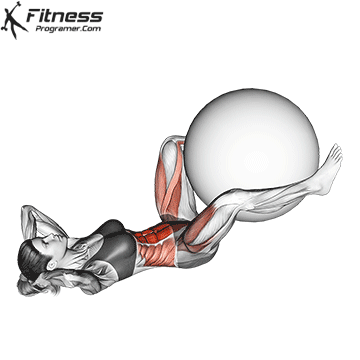 짐볼과 함께 하는 복부 운동은 크런치 변형과 V업 변형이 있다. 프로그 크런치를 짐볼과 함께 하면 복직근과 복사근 강화에 도움이 된다. 브이업으로 짐볼을 다리에서 팔로 옮겨 가는 동작은 역시 복부 운동뿐 아니라 대퇴사두근에도 자극을 받을 수 있다. 짐볼 자체의 무게가 있어 운동 강도를 훨씬 강화할 수 있다. AB 슬라이드의 원리를 이용한 짐볼을 굴리는 자세는 복부뿐 아니라 코어잡기에도 도움이 될 것으로 보이지만 실제 해본 결과 굴리기는커녕 자세 잡기도 어려웠다는 후문이다. 무릎을 끌고 오는 자세인 니턱의 변형 자세 역시 쉽지 않아 보인다.