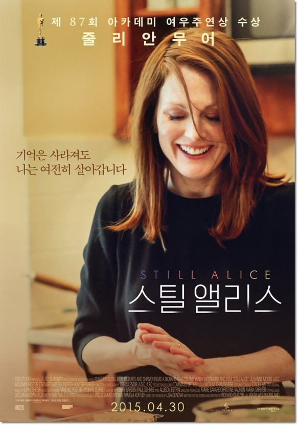 가장 빛날 때 병을 인지하게 된 앨리스가 무너지는 과정과 총기를 잃어가는 줄리안 무어의 눈빛 연기는 대단했다. 불안감을 표현하는 시선 처리, 그리고 상동증적인 손짓, 허공을 바라보는 초점 없는 눈. 여러 영화제에서 여우주연상을 받았던 것은 충분히 인정할 만하다. 기억을 매개로 한 많은 영화들이 로맨스를 함께 물고 가는 경우가 많은데 이 영화는 조발성 알츠하이머에 대한 순수한 인생을 담고 실제에 가까운 설정들과 개연성으로 진한 감동을 이끌어낸다. 눈물 줄줄 쥐어짜지 않고 진한 감동을 주는, 눈시울이 붉어지는 영화였다.