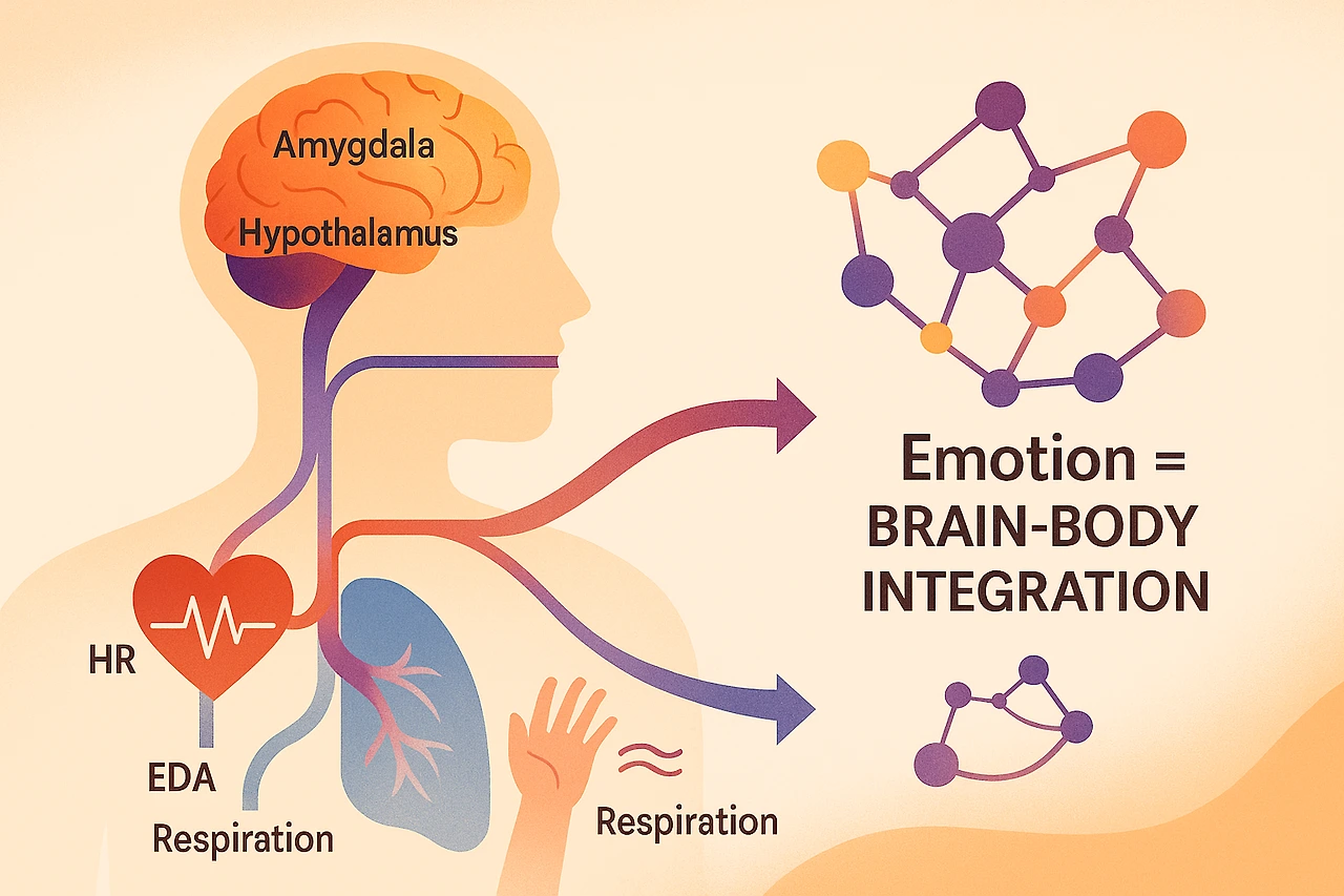오늘날 감성의 생리적 기반은 자율신경계와 밀접하게 연결되어 있다. 예를 들어, 심박수(HR), 피부전도도(EDA), 호흡 패턴 등은 감정 상태에 따라 달라진다. 이러한 신체 반응은 편도체, 시상하부, 전전두엽 등의 뇌 영역과 상호작용하며 감정 반응을 조절한다. 감성은 뇌-몸의 네트워크가 만들어내는 총체적 결과다.