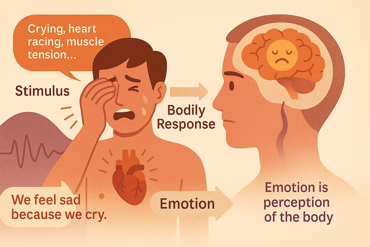 1884년 윌리엄 제임스와 카를 랑게는 감정은 뇌의 해석이 아니라 신체의 반응에서 비롯된다고 주장했다. 이를테면 “우리는 슬퍼서 우는 것이 아니라, 울기 때문에 슬프다”는 것이다. 심장이 뛰고, 근육이 긴장하며, 몸이 먼저 반응하고 그 반응을 지각하는 것이 곧 감정이라는 설명이다. 이는 감성을 생리적 신호의 관점에서 이해하려는 최초의 시도였다.