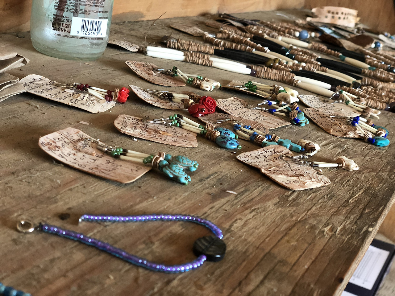 돌아오는 길에 제레미와 그의 어머니가 운영하는 작은 기프트샵에 들렀다. 늑대, 곰, 스라소니 등 동물 가죽과 이빨로 만든 주얼리, 나무껍질로 만든 공예품들이 전시된 아기자기한 공간이었다.