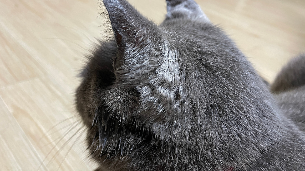 애용이 털은 반곱슬이다. 그렇다. 고양이들 사이에서도 반곱슬이 존재한다. 장모가 아님에도 귀 뒷부분과 앞다리 안쪽이 반곱슬에 털 빛도 좀 더 밝다. 마치 파마를 한 듯한 애용이의 귀 뒷모습은 사랑스럽다.