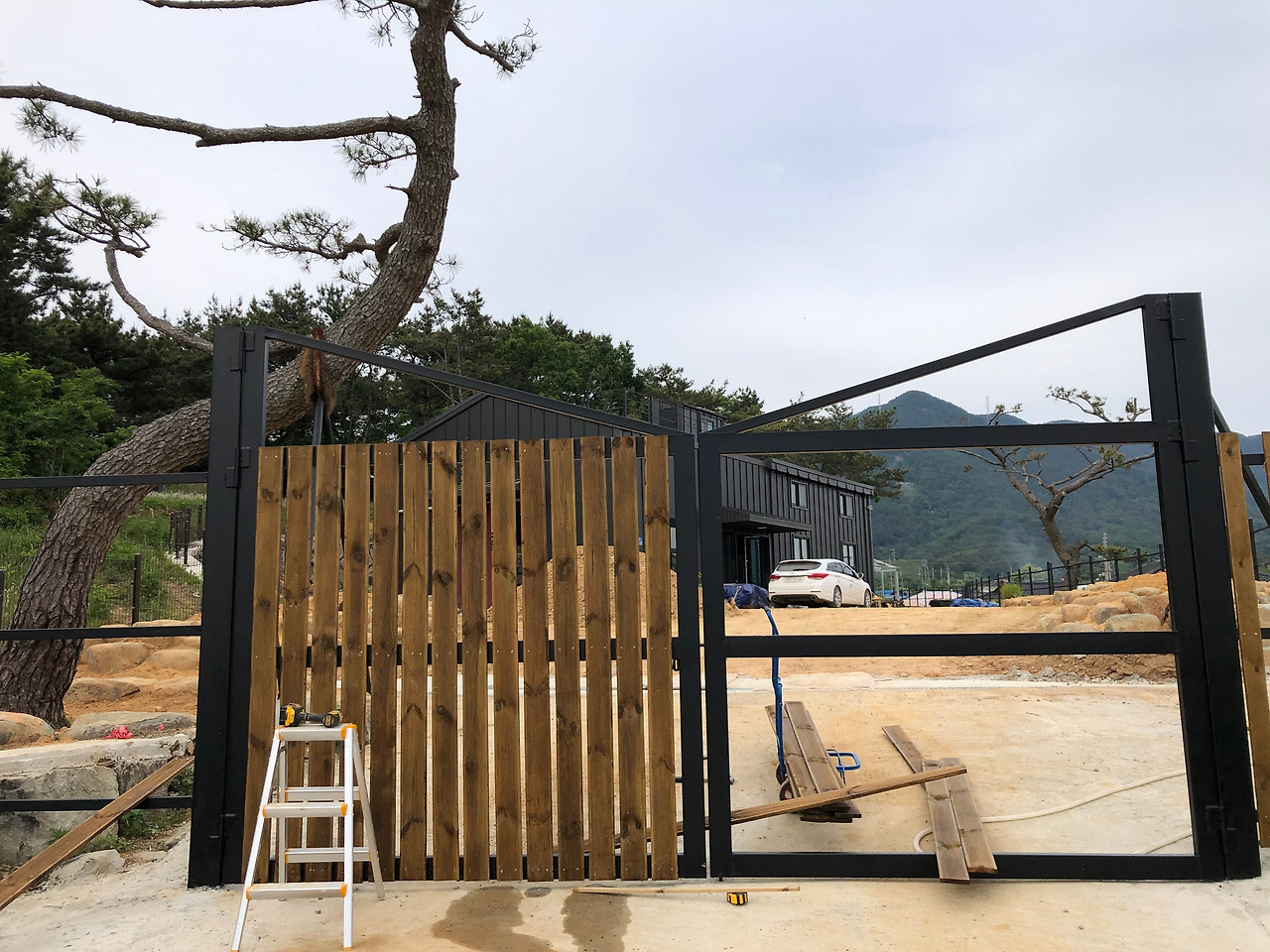 처음에는 대문조차 없었기 때문에, 공사 중에도, 공사가 끝나고 혼자 작업하는 와중에도 마을 사람들은 불쑥불쑥 들어왔다. 마을 주민들이야 호기심에 그랬겠지만, 그래도 개인 공간에 허락 없이 들어오는 건 불쾌하기도 했거니와 안전하지 못하다는 기분이 들었다. 그렇게 대문 없이 일 년 가까운 몇 개월을 보내고 학교에 강의 나가는 돈과 전시를 하며 모은 돈을 차곡차곡 모아 휀스와 대문을 달기 시작했다. 그렇다. 돈이 모일 때마다 한 군데씩 고치고, 공사하고… 그 과정에서 손재주 덕에 많은 걸 스스로 해결했다. 그렇다 보니 작업실에서 작업하는 시간보다 노동을 하는 시간이 훨씬 많아졌다. 이제는 요령도 생겨 하루 2~3시간은 수리나 작업실 보수 작업을 하고, 나머지는 작업에 몰두하고 있다. 어느새 나름의 균형을 찾아가고 있는 중이다.
