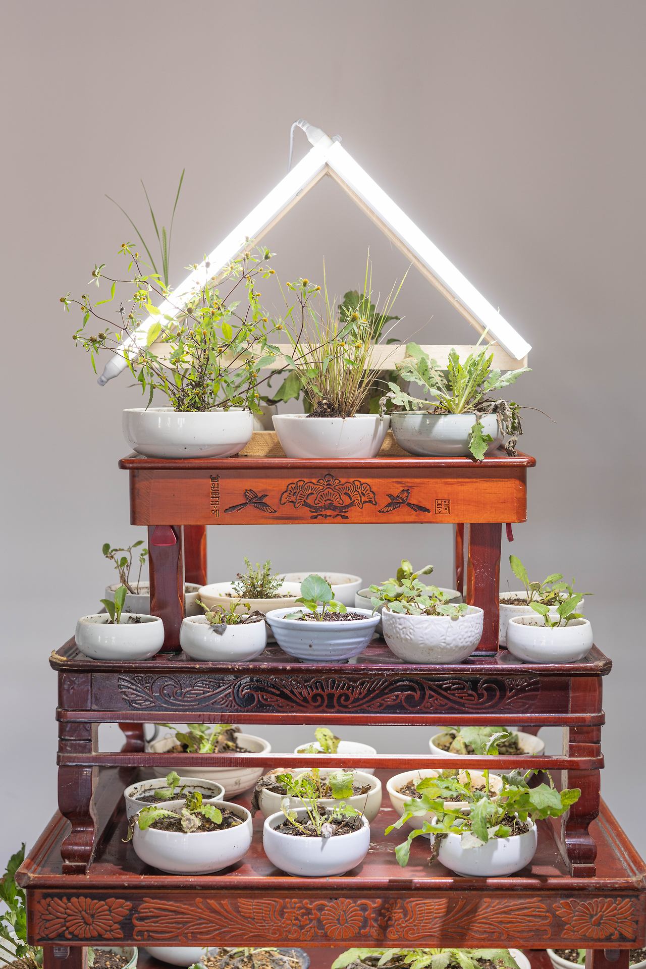 그래서 식물이 설치되는 작품에는 식물이 자랄 수 있는 식물재배등을 따로 설치한다.