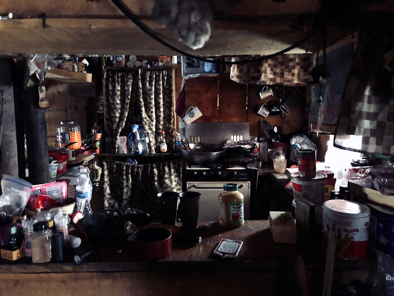 여름에는 집 앞으로 흐르는 큰 유콘 강을 이용해 뗏목으로 생활품과 손님들을 나르고 이렇게 겨울에는 제트스키로 주유소를 왕복한다고 설명해 주었다. 이내, 게스트하우스와 연결되었지만 따로 지어진 자신의 주거공간도 함께 보여주었는데 거실 겸 침실과 조그마한 부엌, 그리고 동물의 가죽을 보관하는 공간으로 나누어진 그의 공간은 사람 냄새 찐하게 나는, 제레미의 외모만큼이나 확실한 캐릭터를 보여주는 공간이었다.