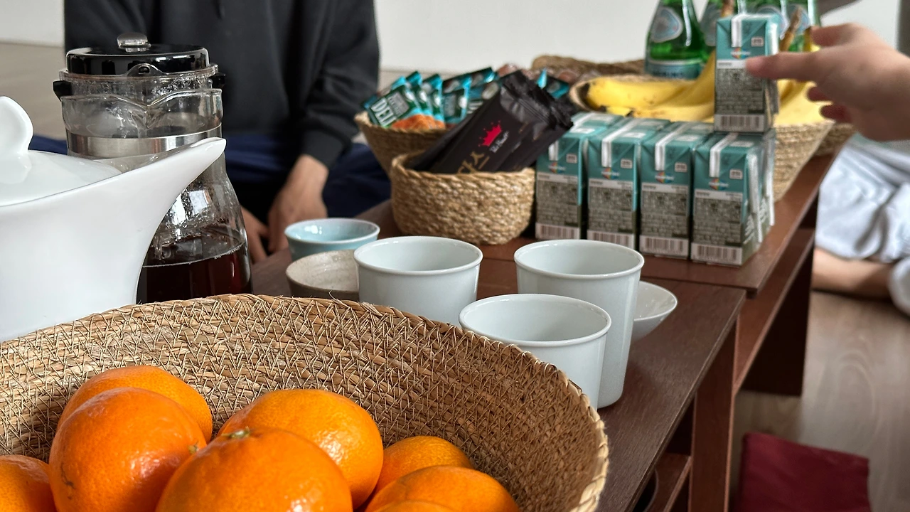 수련 후에 시간이 되는 분들은 모여서 귤과 과자, 보이차를 앞에 두고 얘기를 나눴다. 서울 북촌 요가원에서 수업을 듣다가 이 수업을 알게 되어 분당에서 오셨다는 분도 계셨고, 우리 요가원에서 오신 익숙한 얼굴도 보였다. 이 자리를 위해 선생님은 귀여운 바구니와 다과상을 구입하셨다고 했다. 늦게 오신 분 말에 따르면 주차장은 건물 밖까지 차가 가득했다고 한다. 역시 수련오는게 나만 귀찮았나 싶었고, 이렇게 모두가 열정적인데 수업을 빠지는 것은 큰 민폐라고 느꼈다. (나는야 노쇼근절운동본부)
