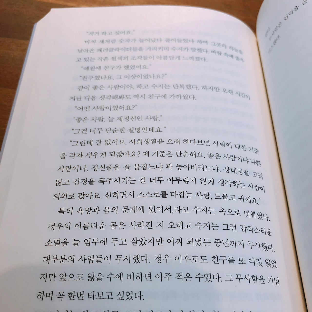 그것이 무엇인가. 정확하게 무엇인지 단언하기 어렵지만 나는 그것이 이들이 공통적으로 겪고 있는 일상의 슬픔, 그리고 그 슬픔에 대처하는 방식에 있지 않을까 생각했다. 소설 속 인물의 공통점은 정도의 차이가 있지만 생활을 힘겹게 버티고 있으며, 버티면서도 제정신이려고 노력하는 사람들이라는 것이었다. 작가의 표현을 빌리자면 선하면서 스스로를 다잡는 사람(p.190)들 말이다.